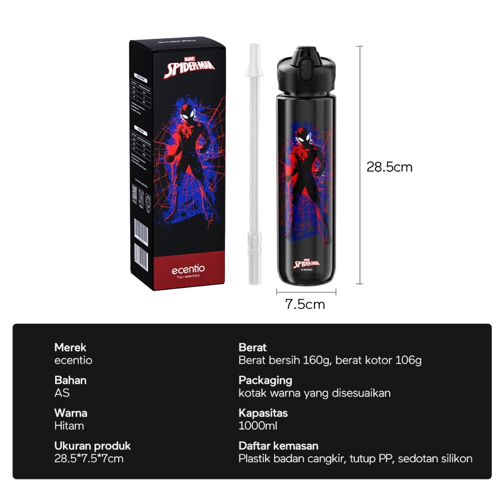 Little Mall BOTOL ECENTIO ANAK SPIDERMAN MARVEL SEDOTAN 1000ML ECENTIO BOTOL ORIGINAL TUMBLER ANAK
