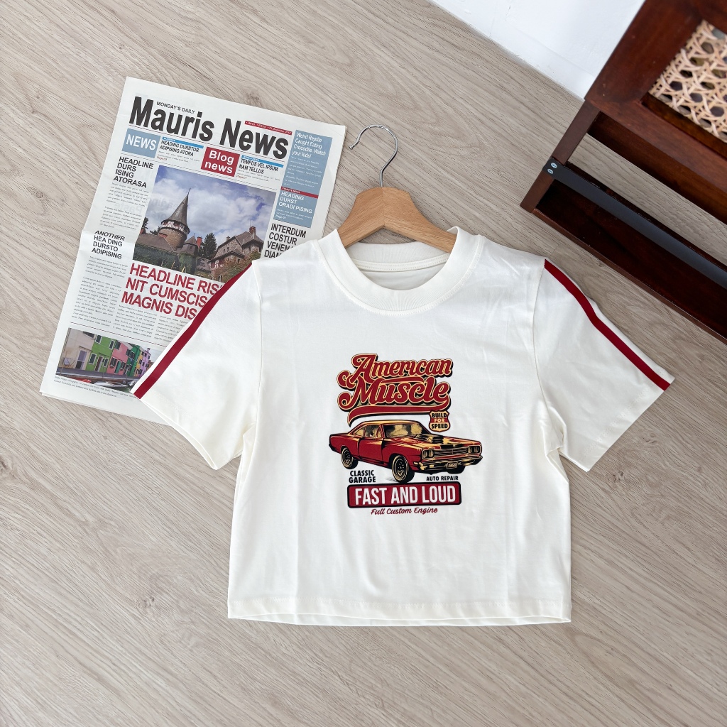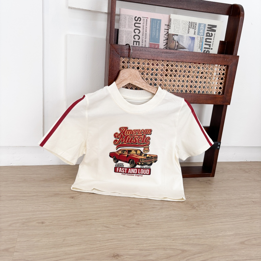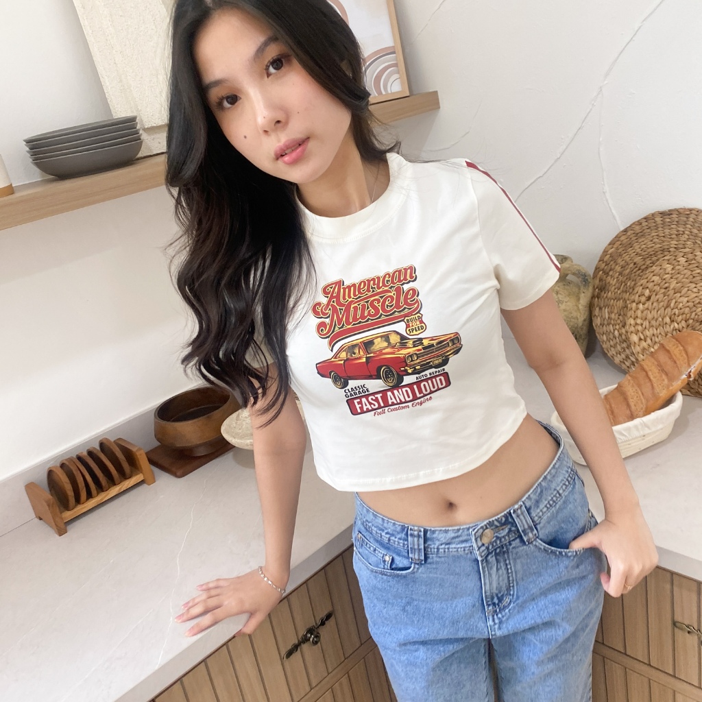 Car Crop Top Tee Kaos Wanita Skena Outfit Crop Top Lengan Pendek Korea - Relaxar