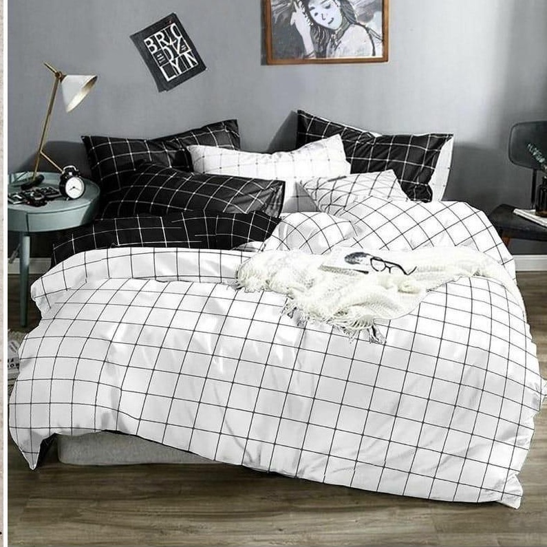 SPREI MOTIF UKURAN 180x200 160x200 120x200 ABSTARK DAUN KOTAK HITAM PUTIH ABU BIRU