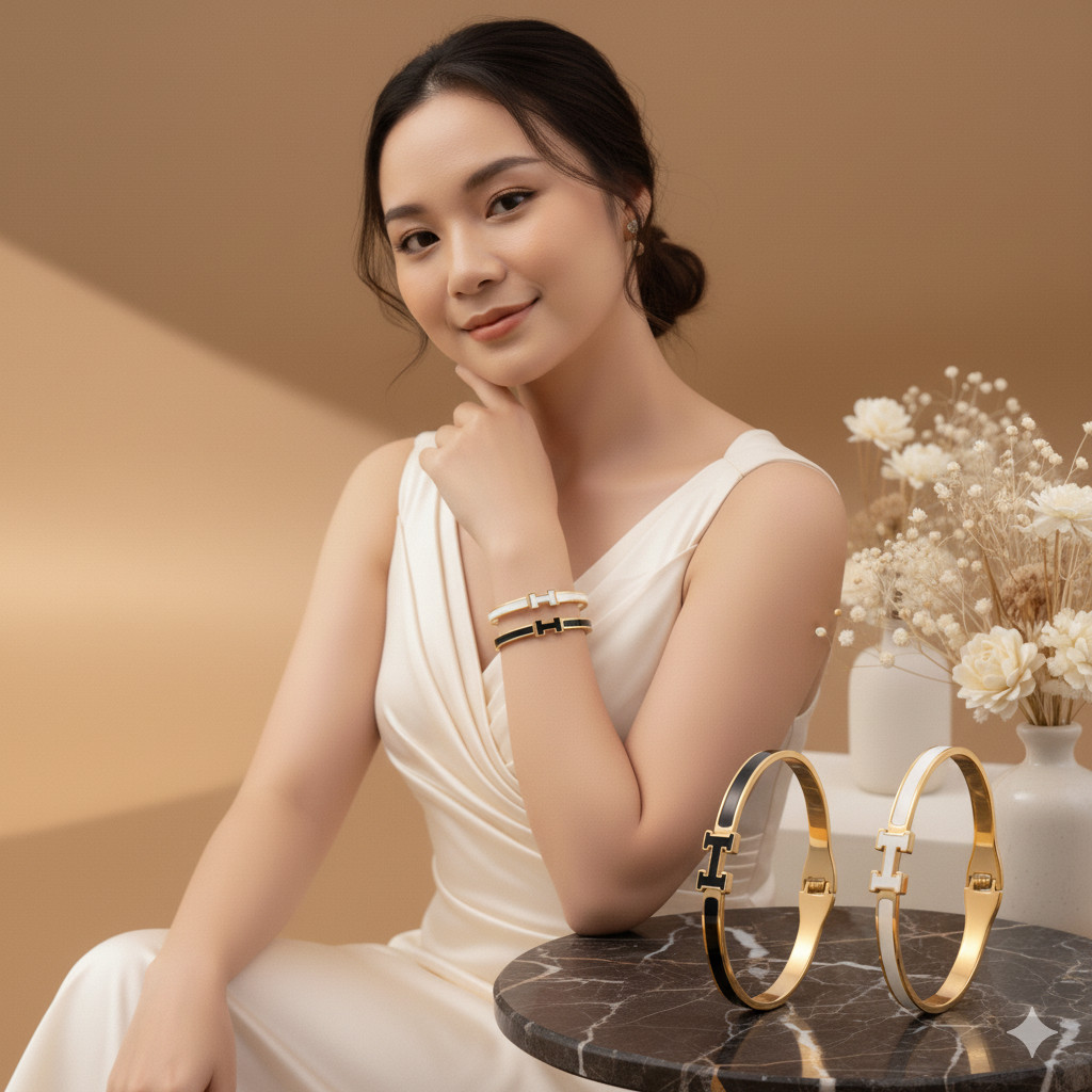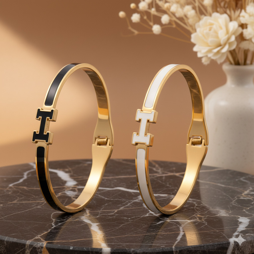 Gelang Wanita - Elegant Haji Enamel Bangle – Gelang Stainless Steel Gold Hitam & Putih GSM0025