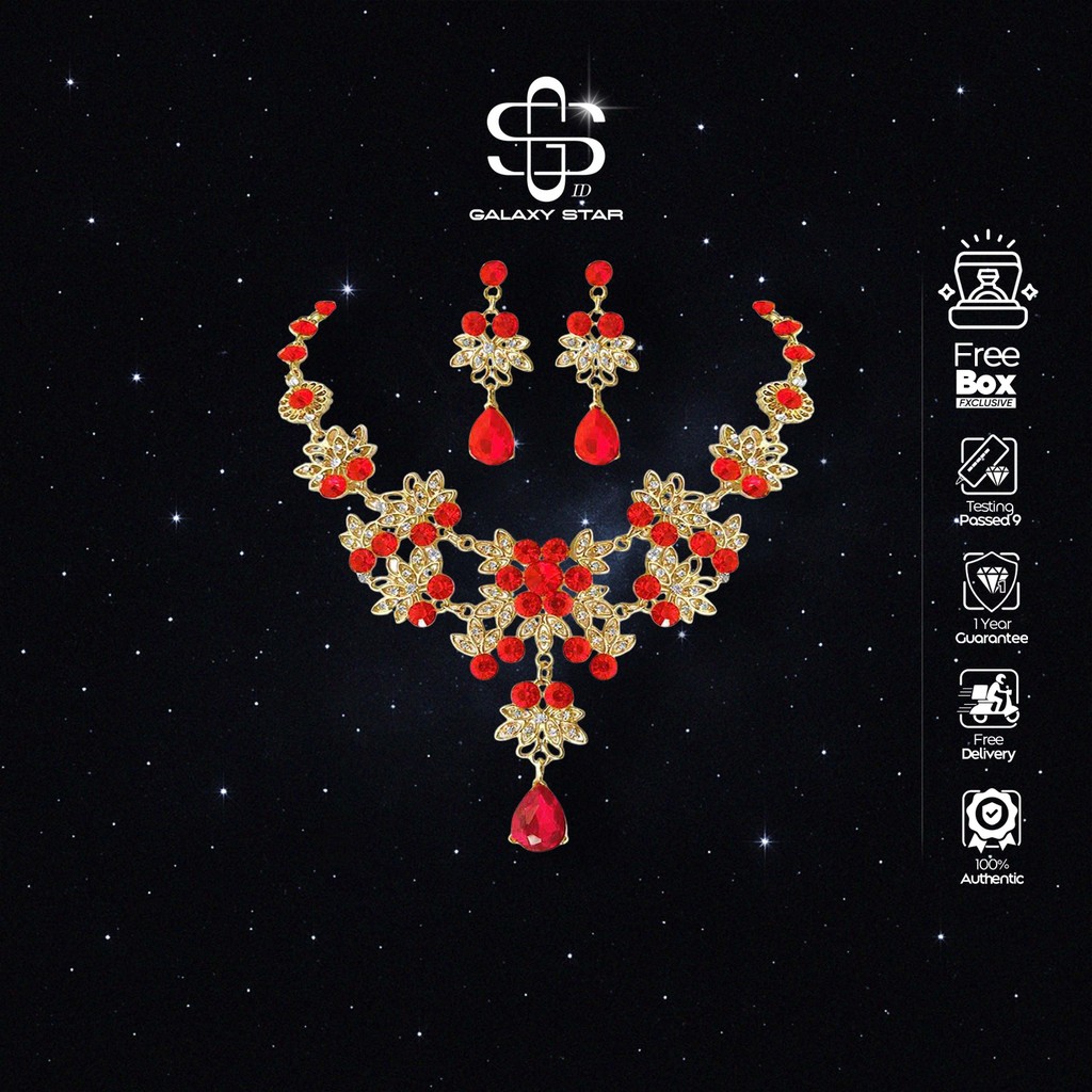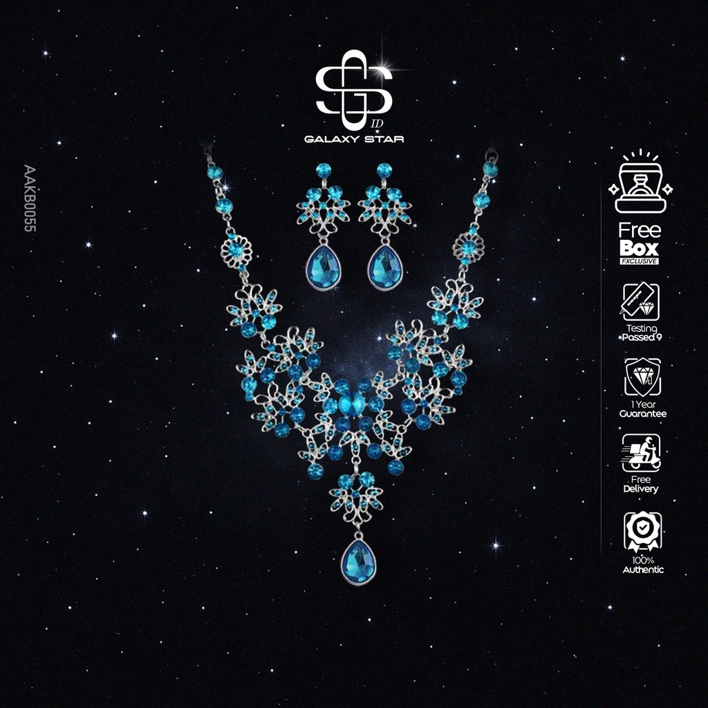Set Anting dan Kalung Bunga Mewah | Sparkling Zircon Crystal | Perhiasan Tembaga Alloy AAKB0055