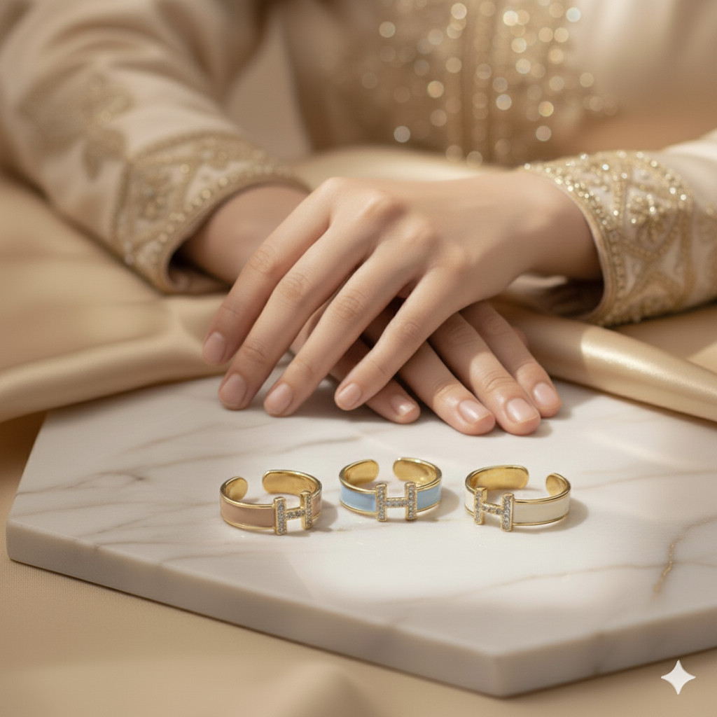 Cincin Wanita - Haji Luxe Enamel Ring – Cincin Stainless Steel Gold dengan Detail Kristal ACM0040