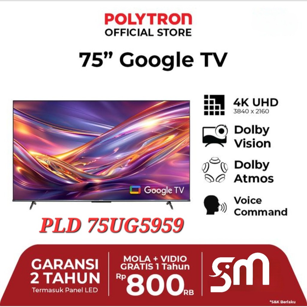 LED TV Polytron 75 inch PLD 75UG5959 UHD 4K Smart Android Google tv