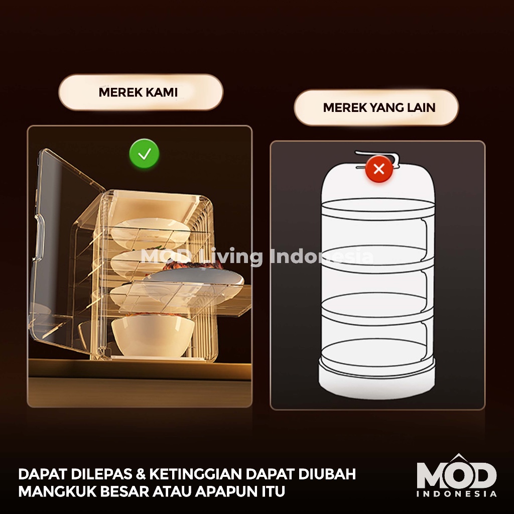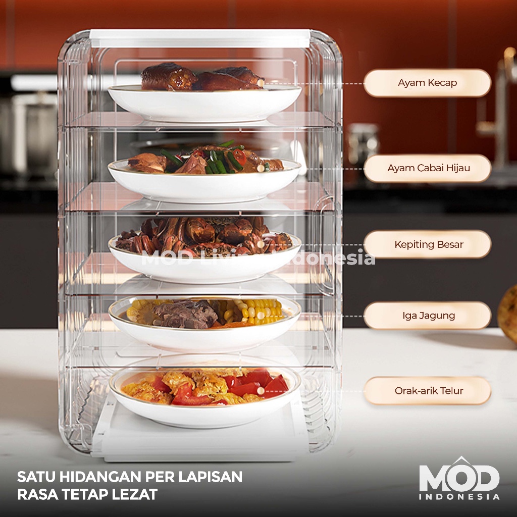 MOD Tudung Saji Makan Bertingkat Anti Debu dan Anti Serangga [DISHWASHER SAFE] - PEPIFAK Rak Makanan Tingkat, Artefak, Serbaguna / Artifact Food Shelf