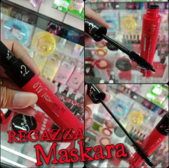 ( PROMO HARI INI BUY 2 free LIP CREAM ) REGAZZA MASCARA 2 in 1 WATERPROOF