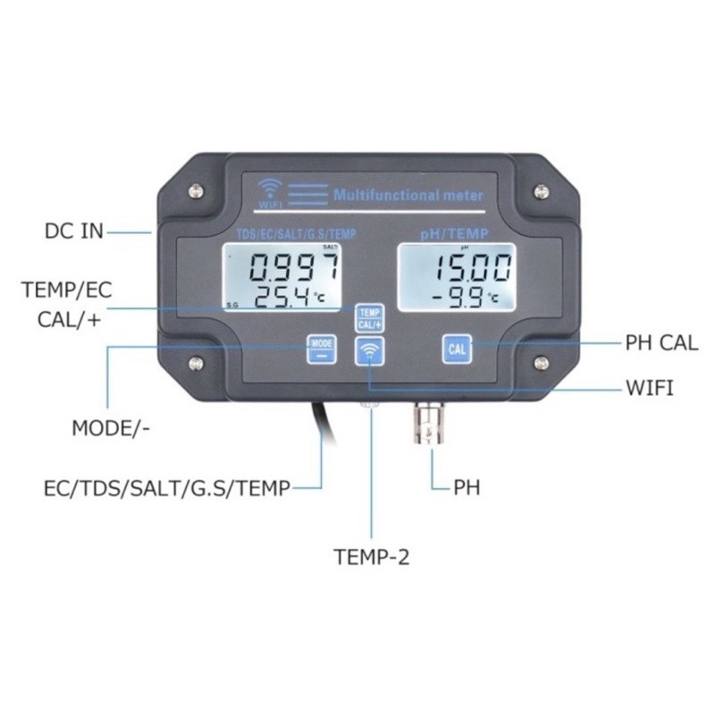 Smart WiFi Tuya 6in1 PH EC TDS Salinity S.G Temperature Meter W3988