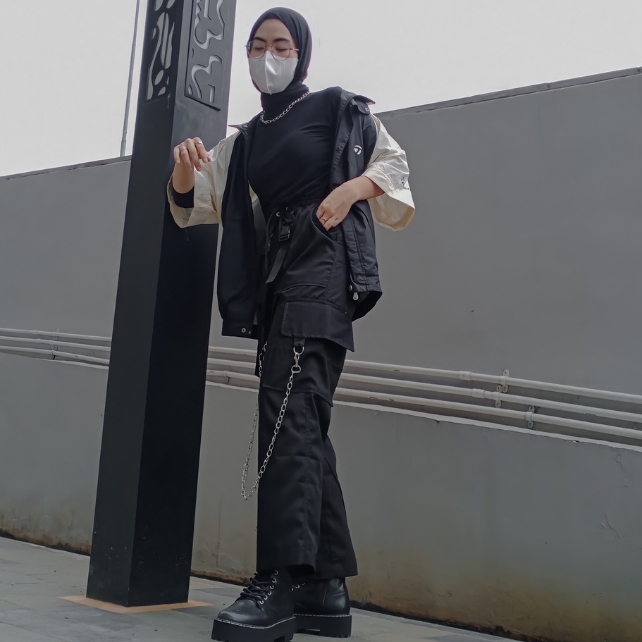 4empat - Cargo loose Thigh celana cargo celana cargo wanita Cargo Joger korean style