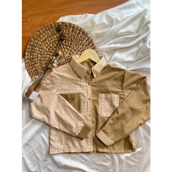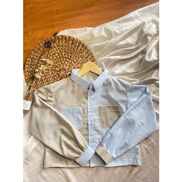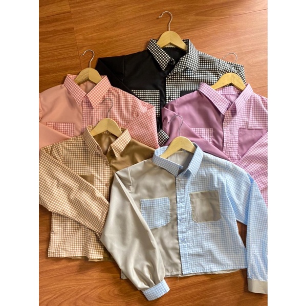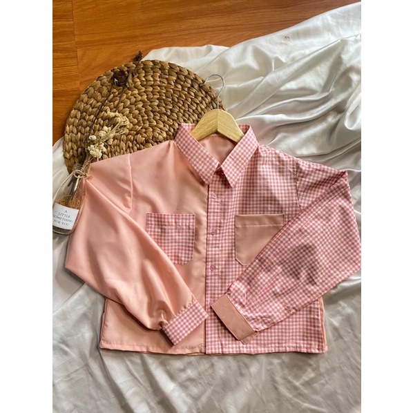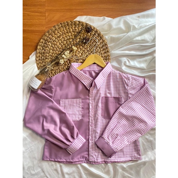 Kemeja two tone | Rumi Top | KEMEJA KOTAK | KEMEJA OVERSIZE MODEL CROP