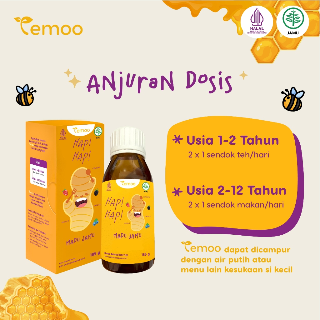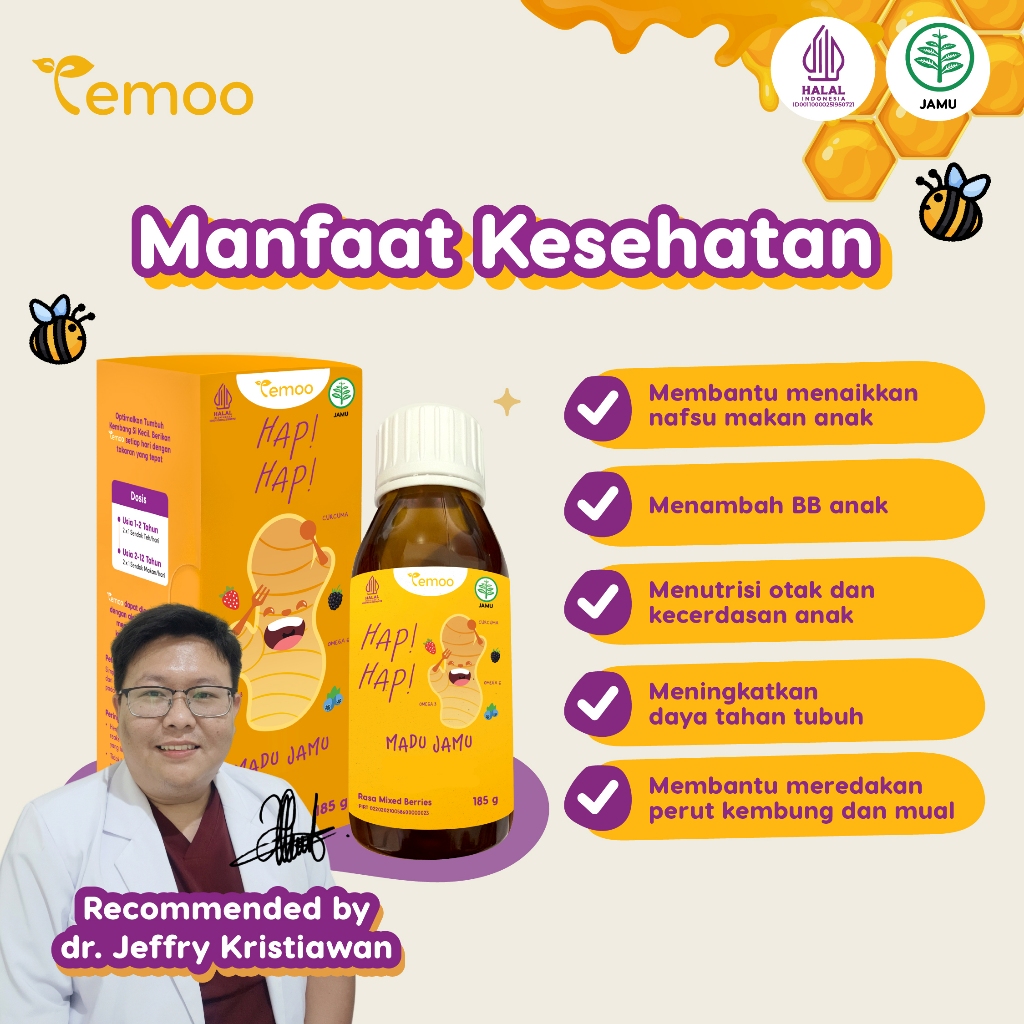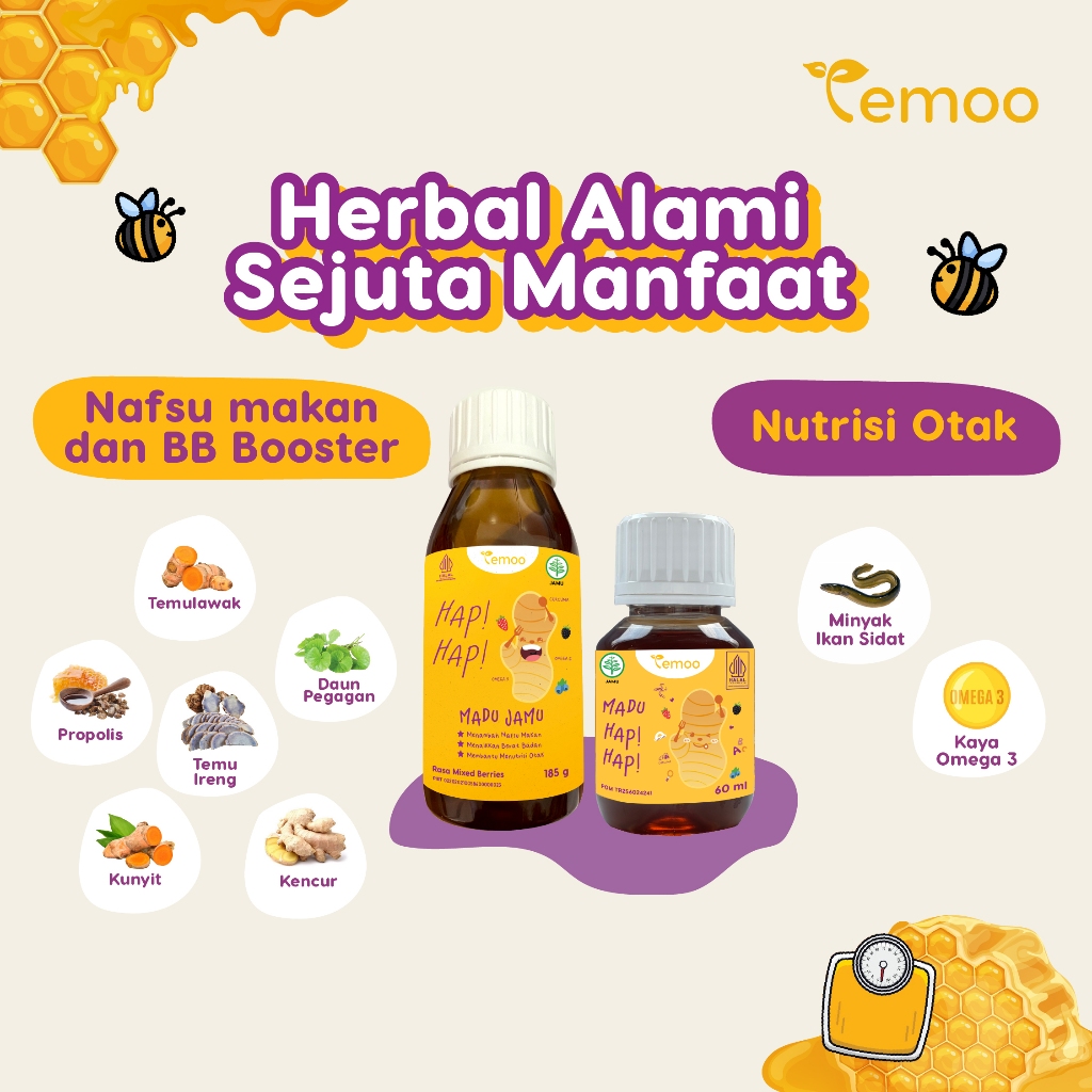 Paket Gemoy B - Temoo Hap Hap Madu Jamu [Set 2 x 185 gr] - Vitamin Penggemuk Badan Anak & Vitamin Otak Cerdas - Badan Suplemen Curcuma T44