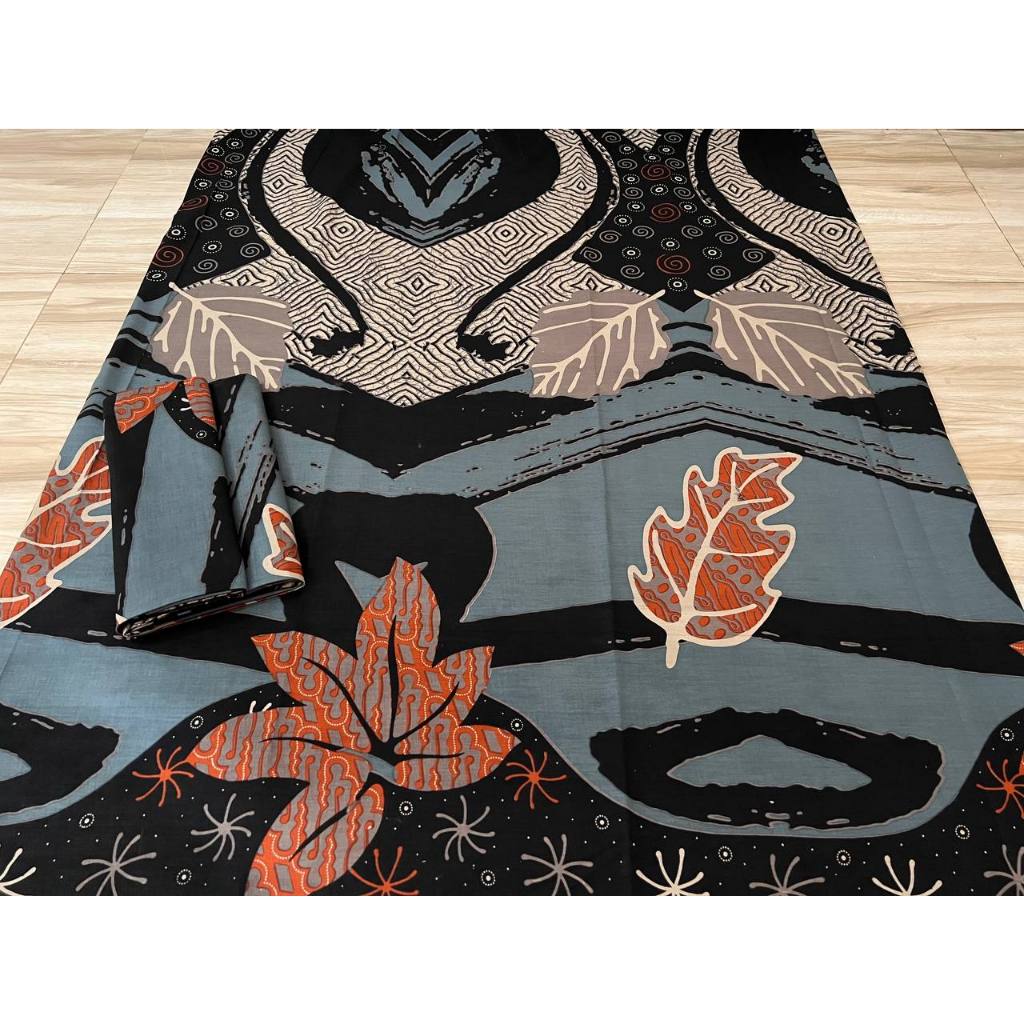 Kain Batik Orange Merona Hitam 2 Meter Pekalongan Motif Abstrak Hitam Merah Kuning Biru 210cmx110cm Katun