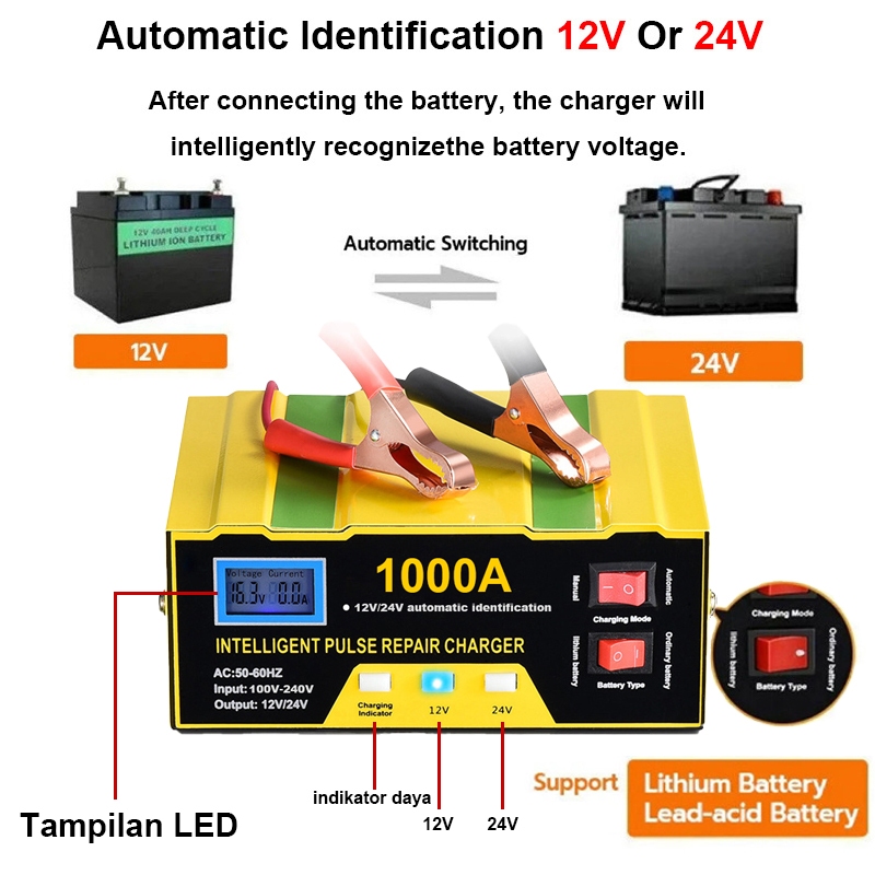 Charger Aki Mobil Motor 12V/24V 6-105AH Case Aki Mobil/Aki Case/Aki Charger/Alat Case Aki Mobil/Case Aki Motor Dan Mobil