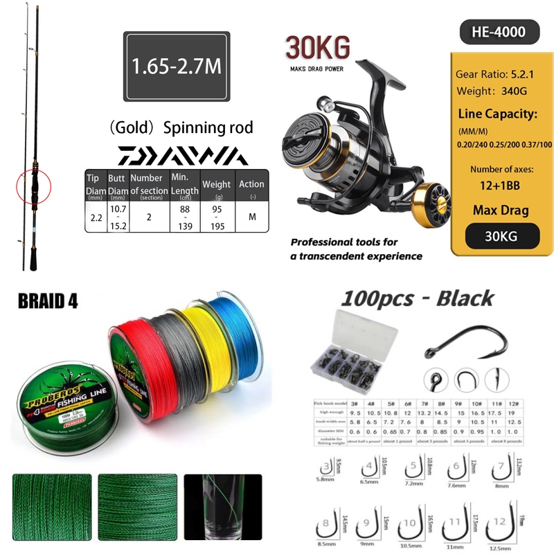 DAIWA Set Pancing Carbon Solid 1.6M-2.7M Joran BC EVA Handle Serat Karbon Lengkap Untuk Air Tawar Laut