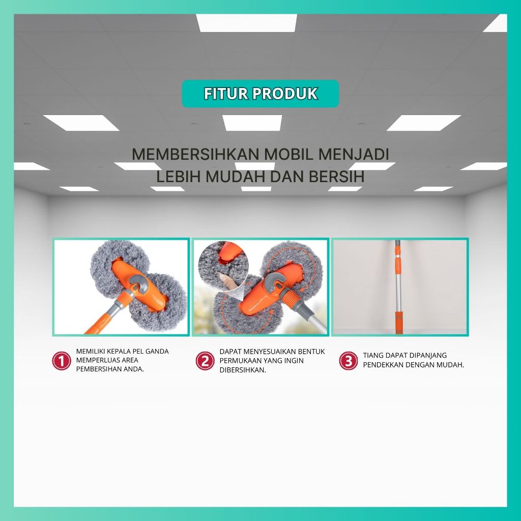 Alat Pel Cuci Mobil Kepala Ganda, Tidak Merusak Permukaan Mobil, Sikat Mobil Teleskopik Bulu Karang.