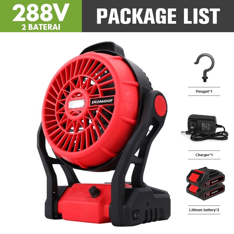 IRONHOOF 288V Kipas Angin 12 Inci Kipas Emergency Kipas Angin Portable Kipas Berkemah Baterai
