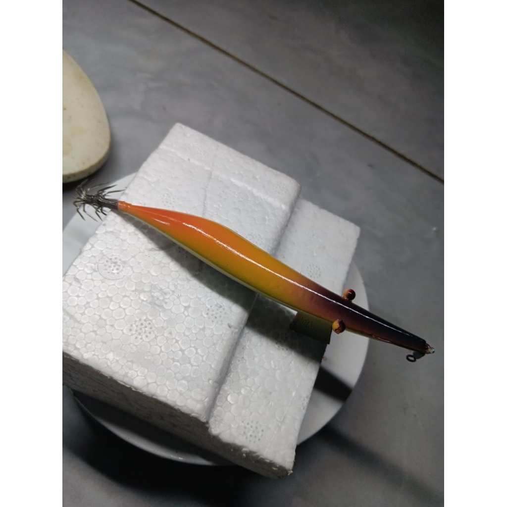 umpan cumi EGI kayu paling jitu untuk sore hari dan malam ukuran 10cm rames2 stainless