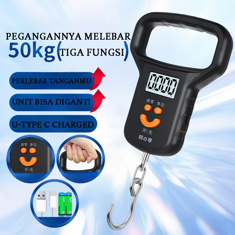 Timbangan Elektronik Pegangan Mini Presisi 50 kg, Tangan Portable, Tingkat Presisi Tinggi, Timbangan Rumah Tangga, Timbangan Ekspres, Timbangan Kait, Timbangan Pegas Kecil