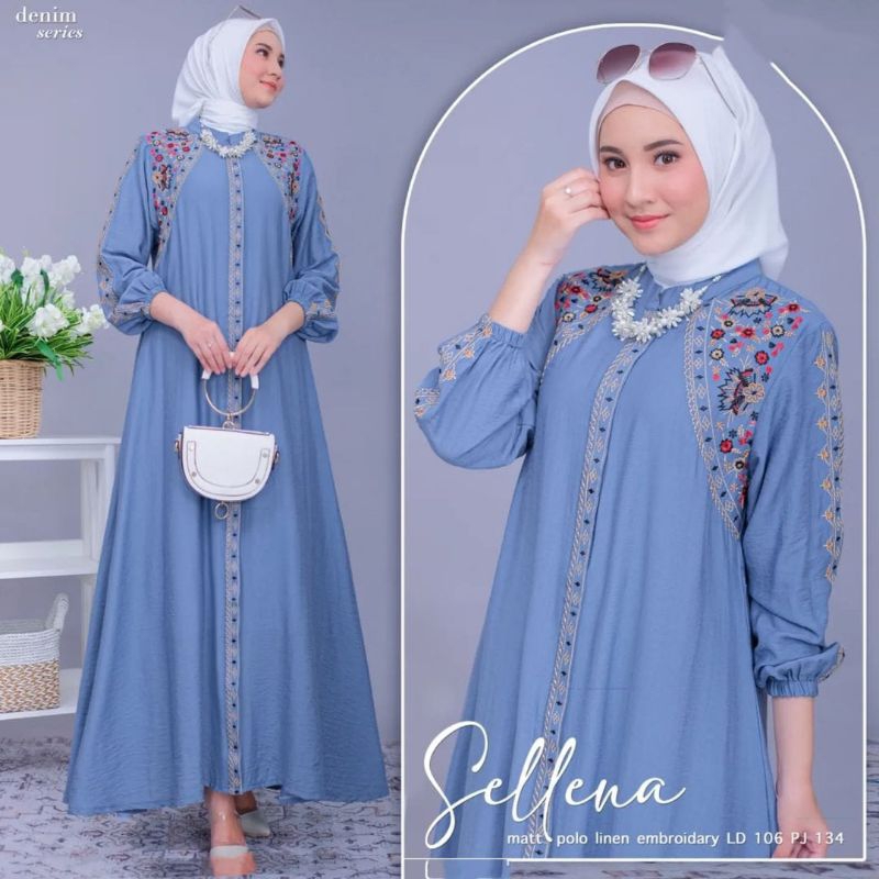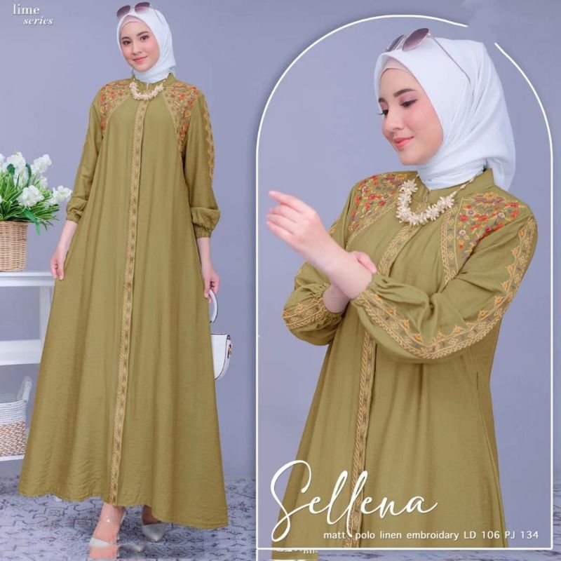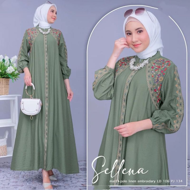 Sellena Dress - Gamis Bordir Mewah Untuk Seragaman Lebaran 2024 _ Gamis Wudhu friendly dan Busui Friendly