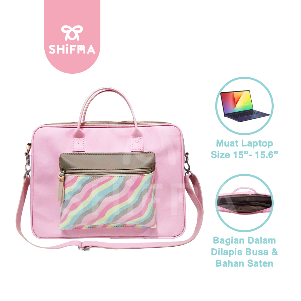 Shifra Tas Laptop Selempang Tali Panjang Kantong Warna Warni Pink Tosca Purple