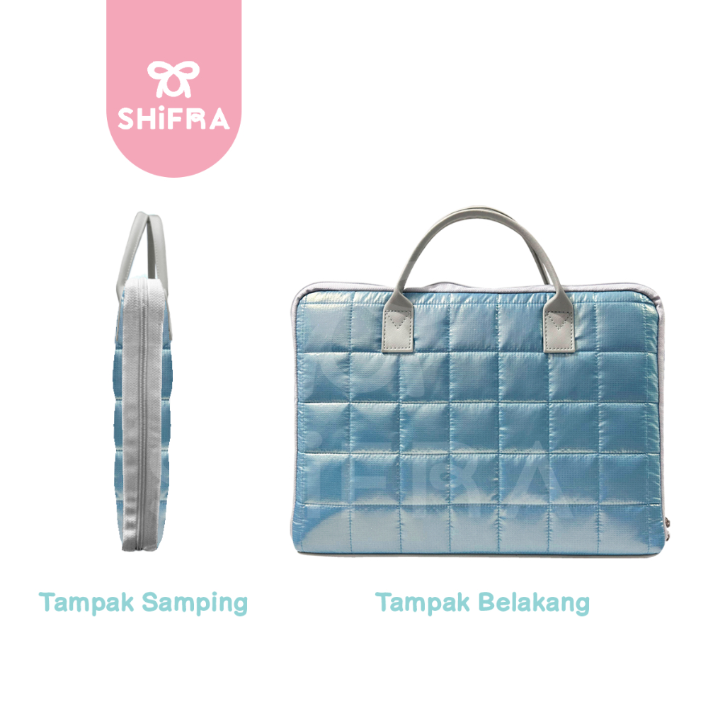 Shifra Tas Laptop Jinjing 15 inch Puffy Pillow Kotak Metalic Doff Pita Ribbon