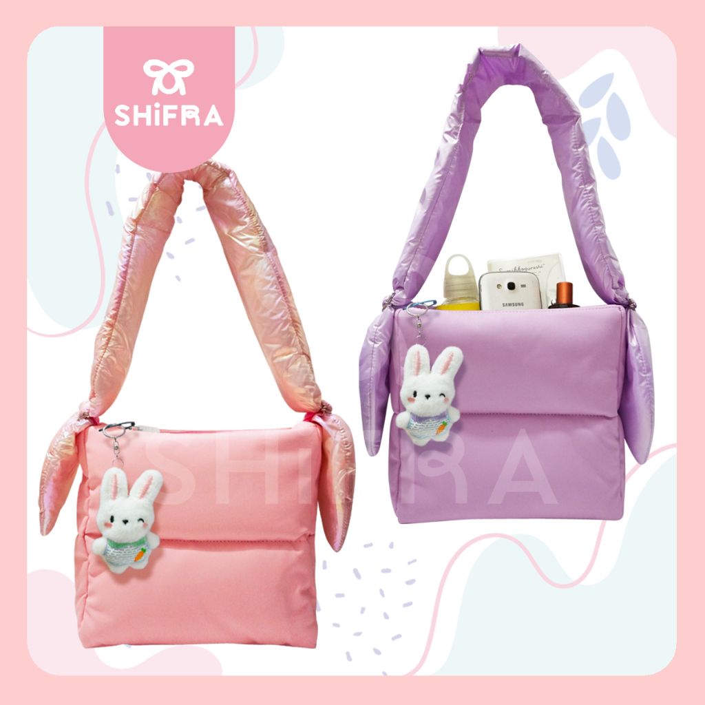 Shifra Tas Bahu Fashion Shoulder Bag Stylist Waterproof dengan Tali Puffy dan Gantungan Lucu