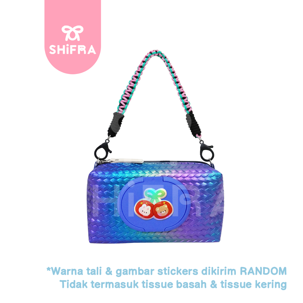 Shifra Pouch Tissue 2 in 1 Tutup Tissue Kering Tissue Basah Braided Hologram Tali Makrame Colorful