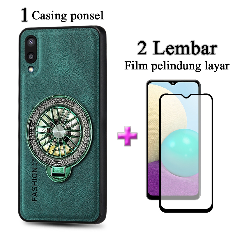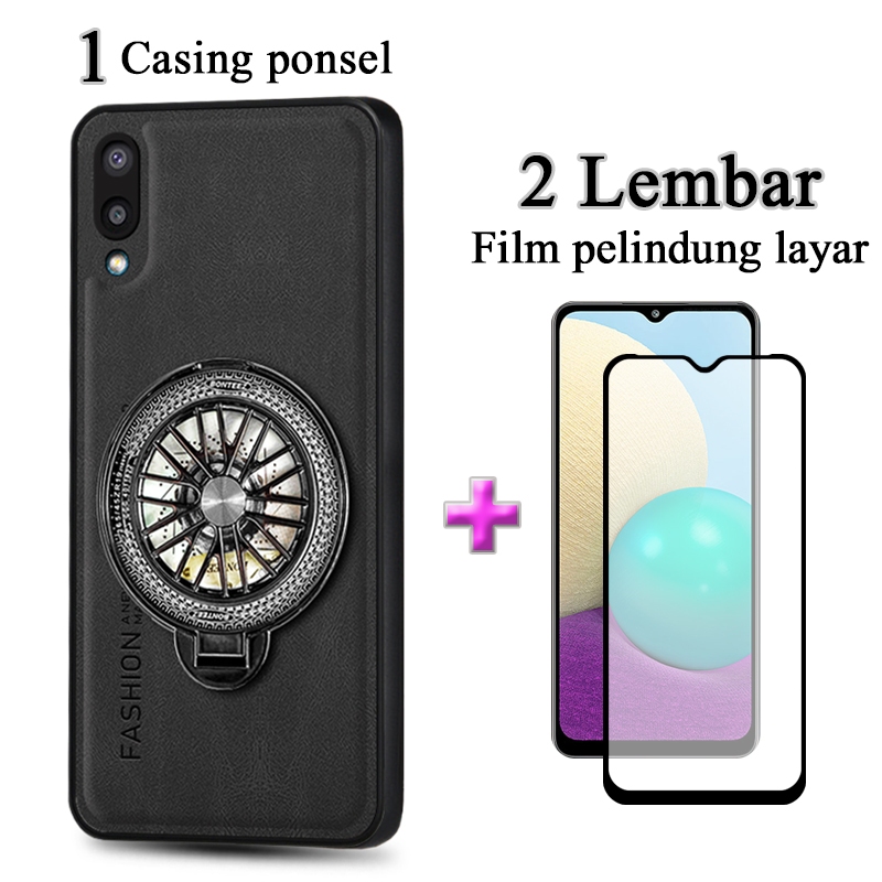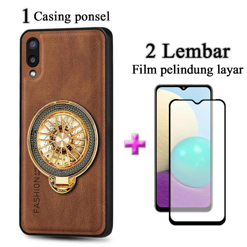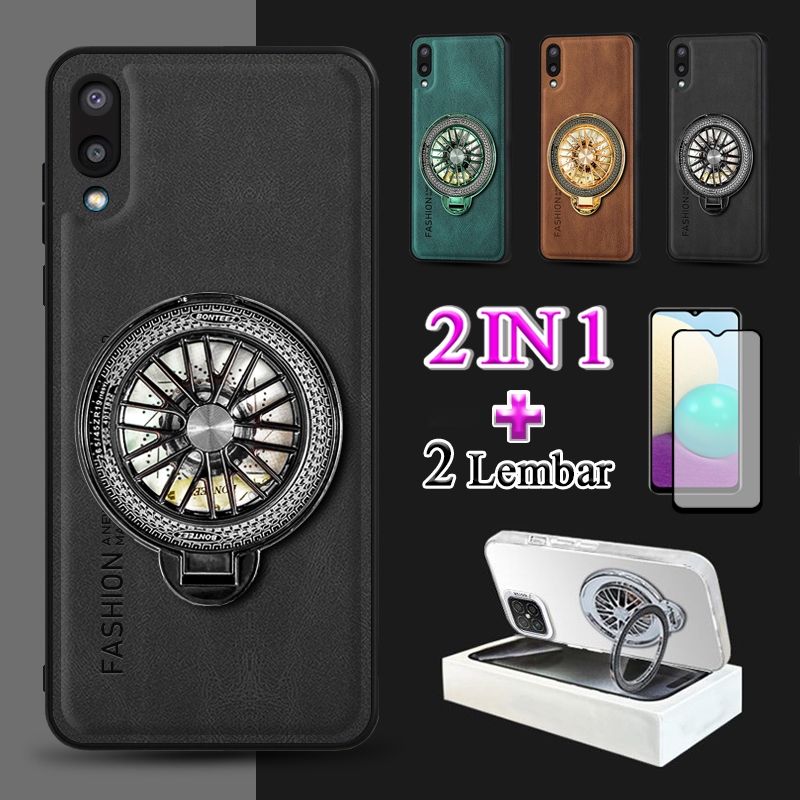 2 In 1 Casing Samsung Galaxy A02 Case Kulit Premium Dengan Stand Holder Film Keramik Layar Protektif