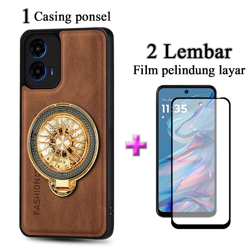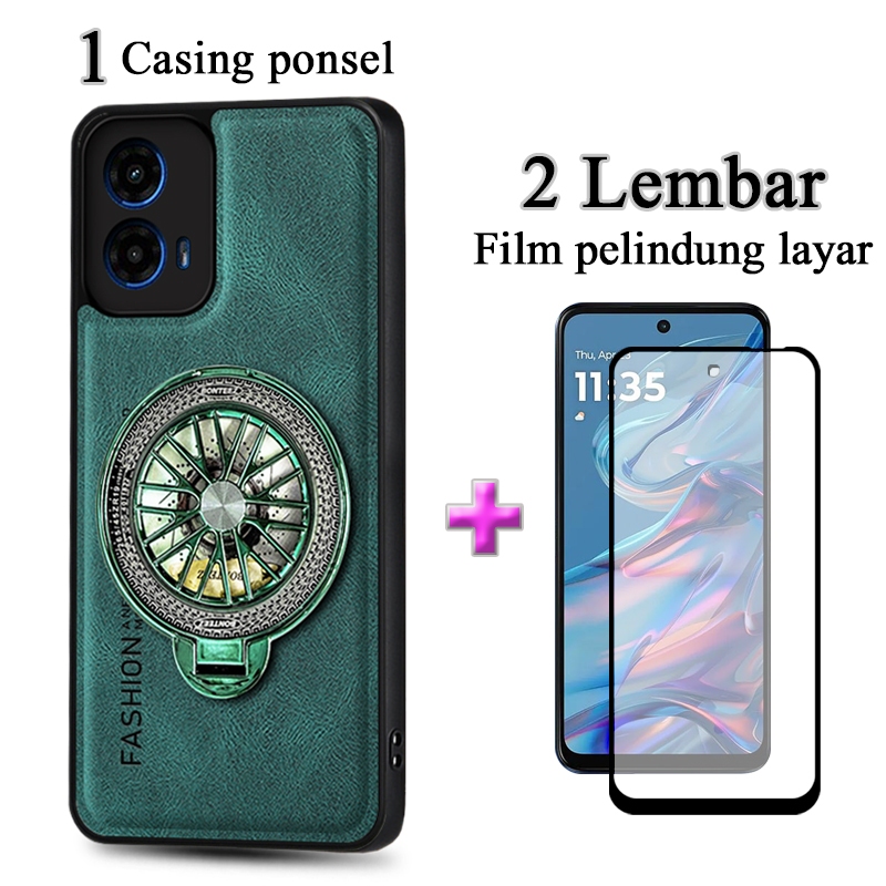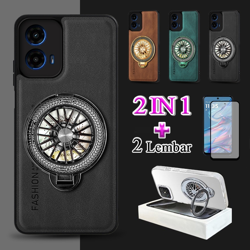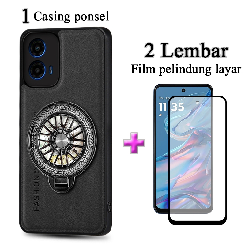 2 In 1 Casing Motorola Moto G45 5G Case Kulit Premium Dengan Stand Holder Film Keramik Layar Protektif
