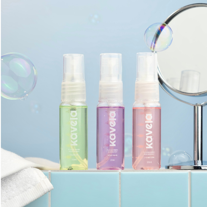 KAVELA Flavor Fresh Bundle Lychee Love dan Calmelon Mouth Spray - Mouth Spray Mulut Fresh untuk Menghilangkan Bau Mulut Penyegar Mulut