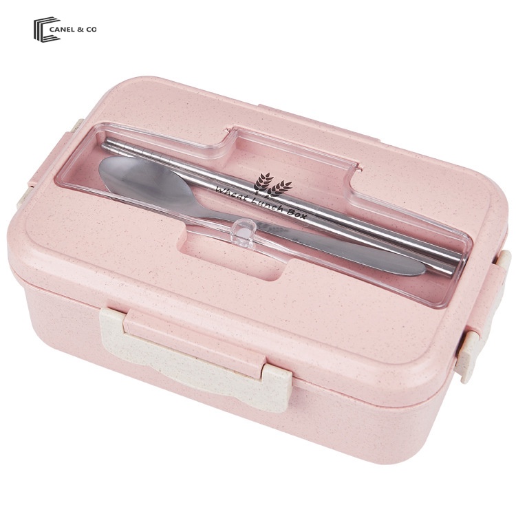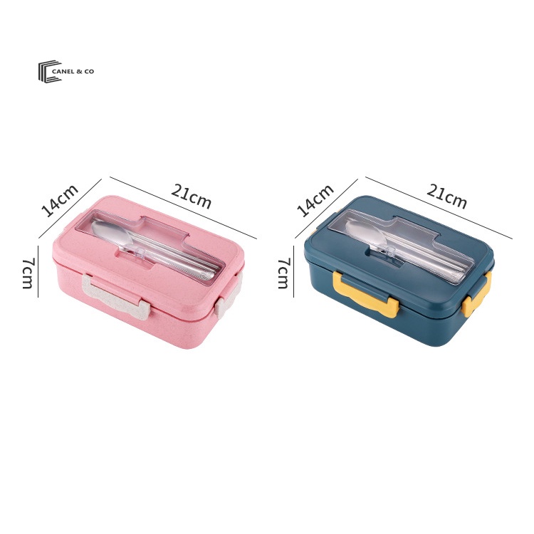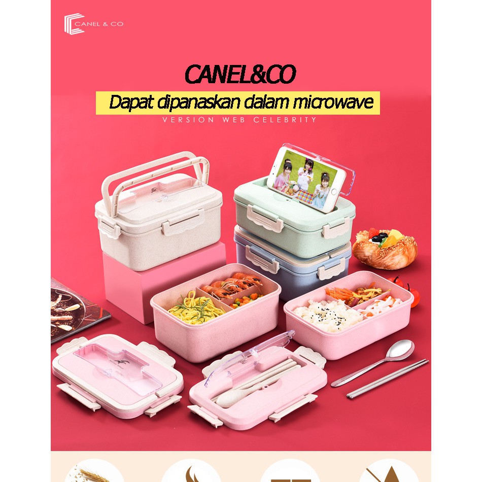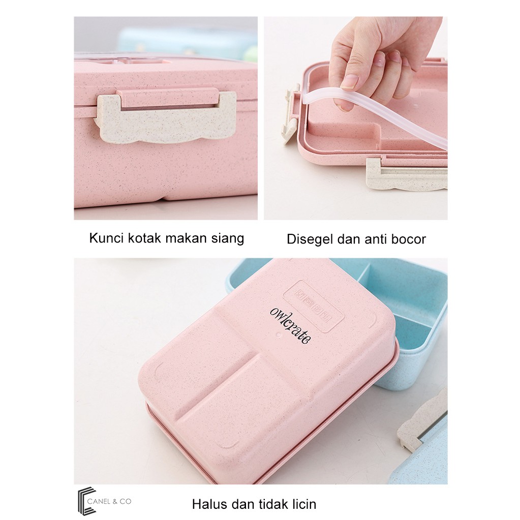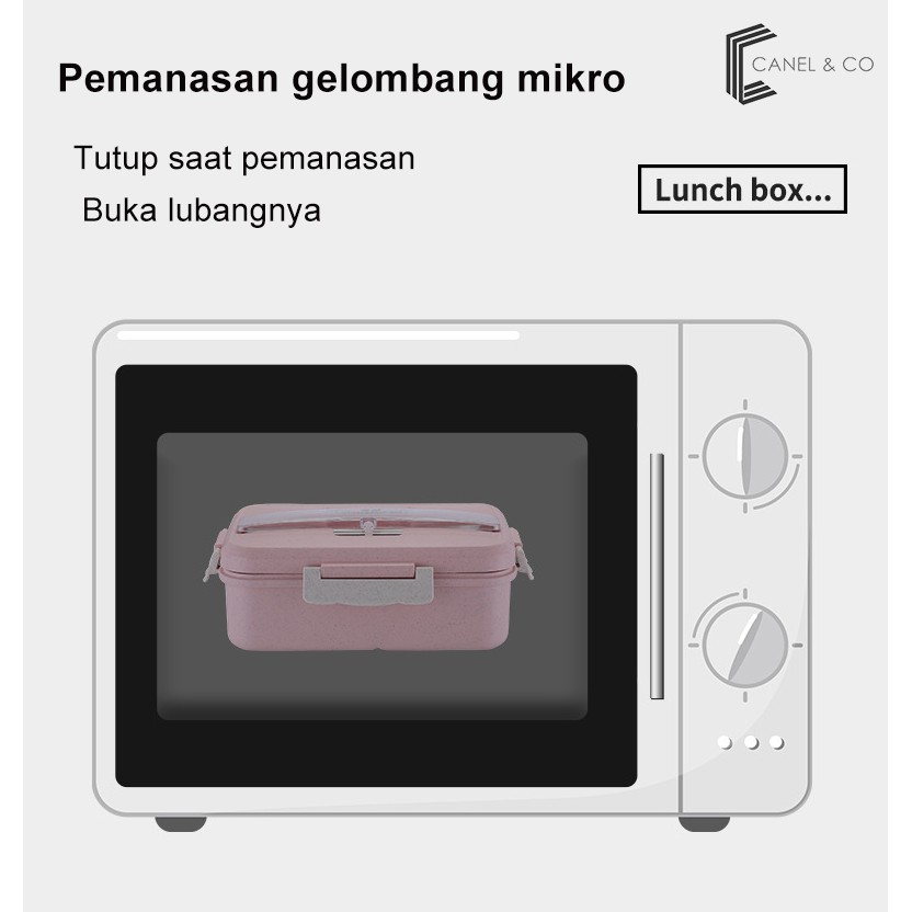CANEL & CO Kotak Bekal Makan Siang Bahan Jerami + Sendok Dan Sumpit 1000ML