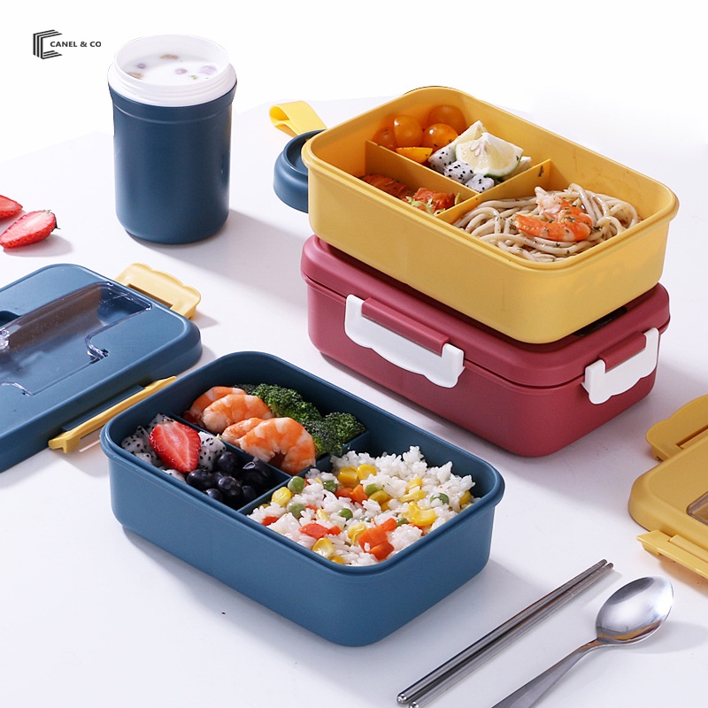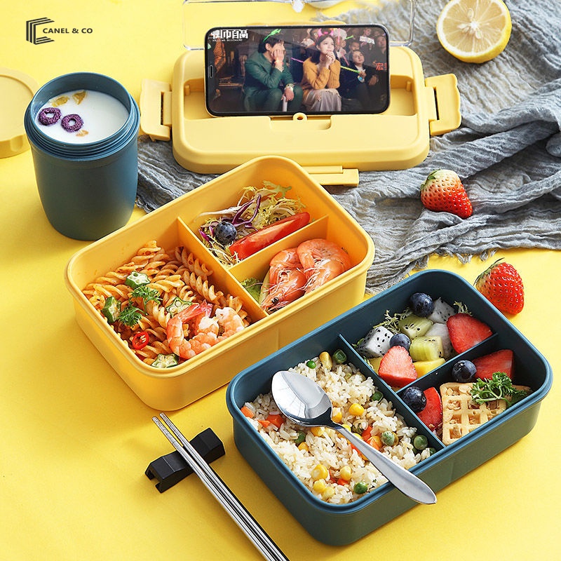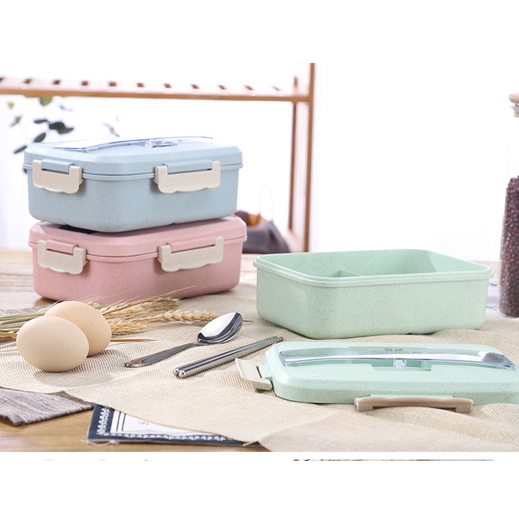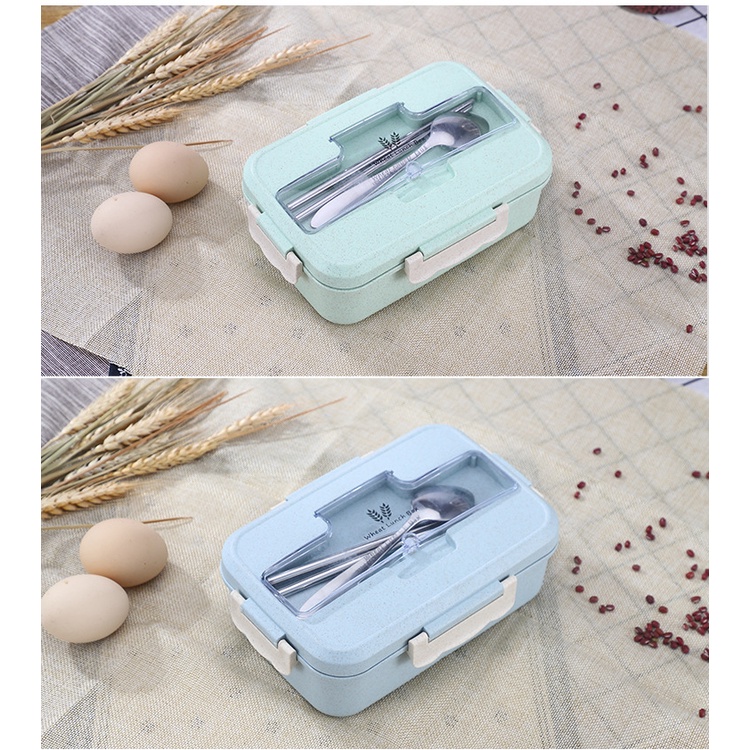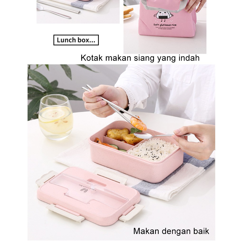 CANEL & CO Kotak Bekal Makan Siang Bahan Jerami + Sendok Dan Sumpit 1000ML
