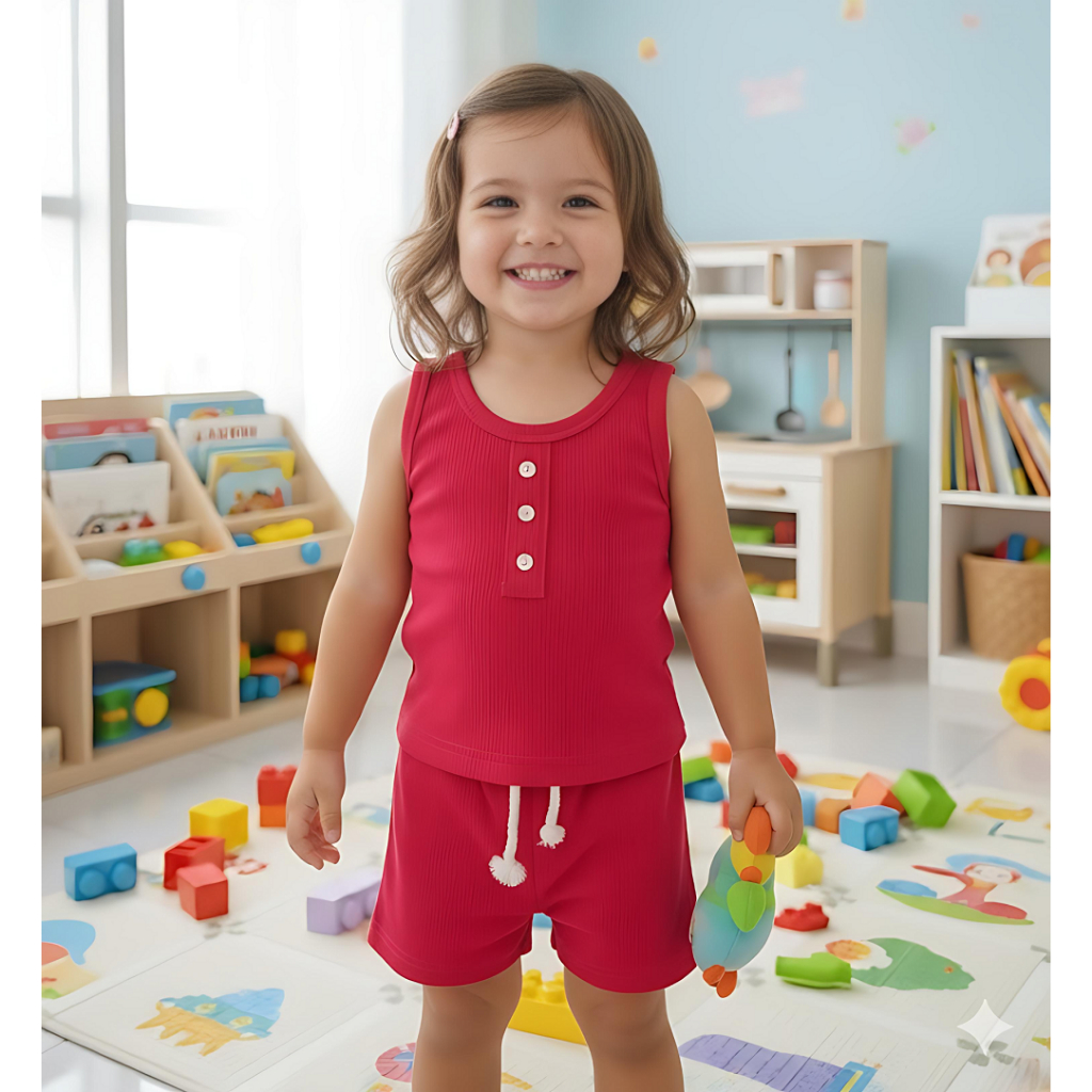ZASKIYA - SETELAN ANAK ANDINE / SETELAN SINGLET KATUNG TANPA LENGAN / SETELAN HOTPANTS TALI RIB 1-3 TAHUN