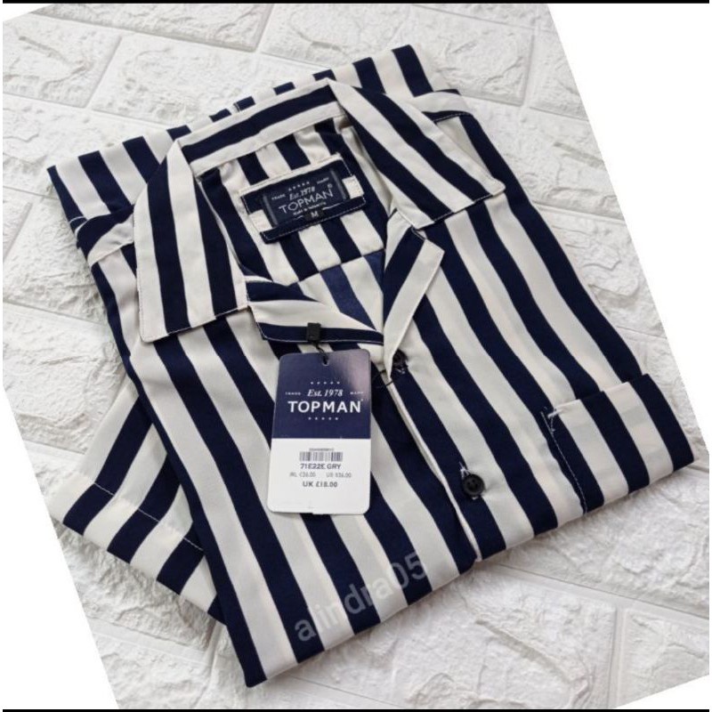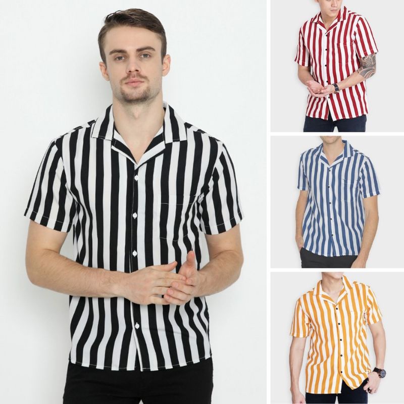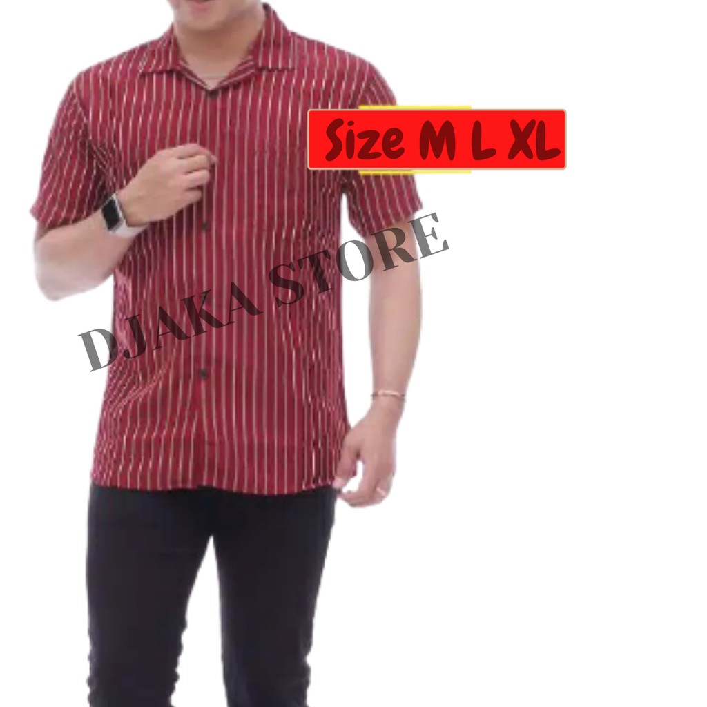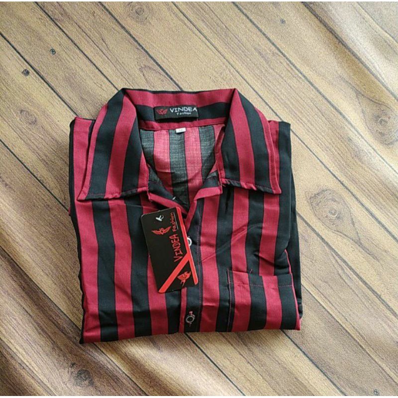 Kemeja Salur Kerah Piyama Sanghai Pria Wanita Keren Termurah Laris Kemeja Strip Garis