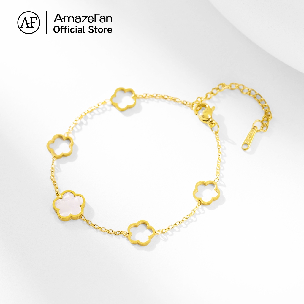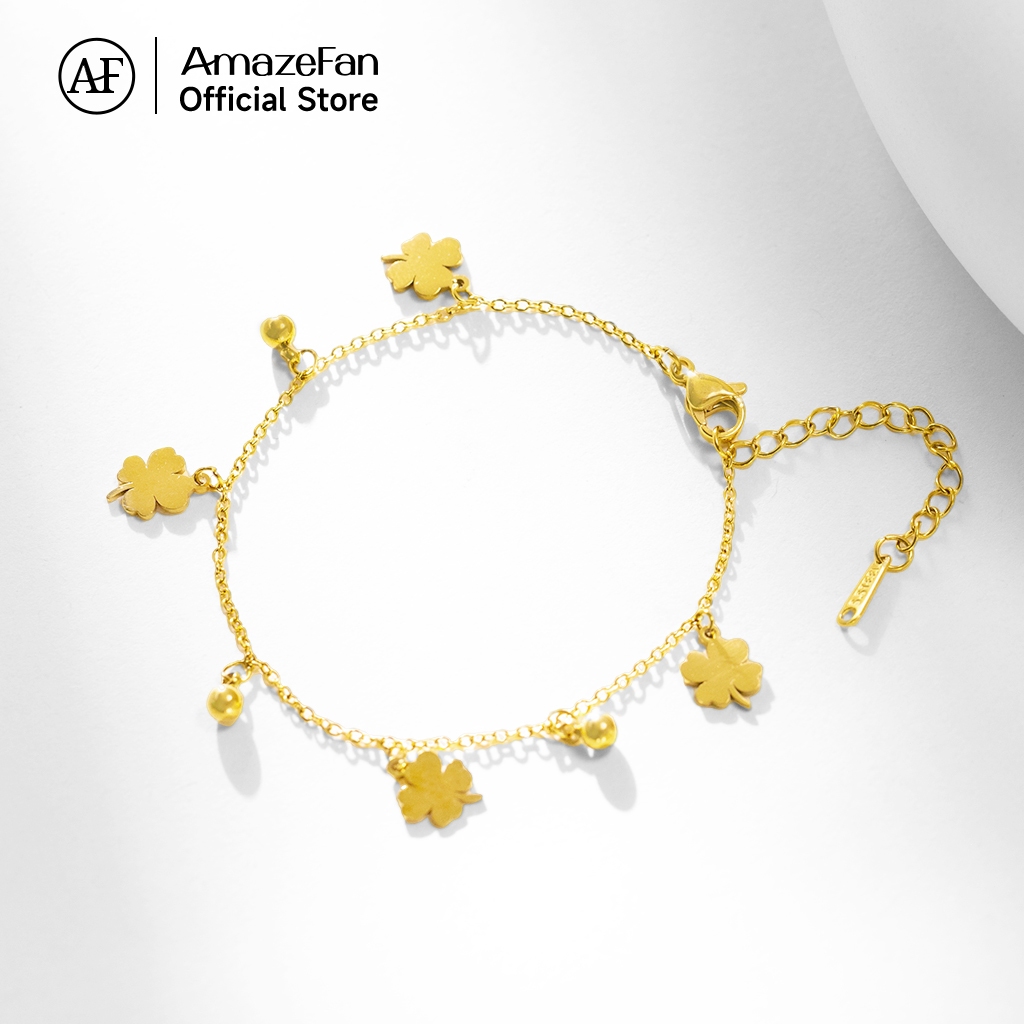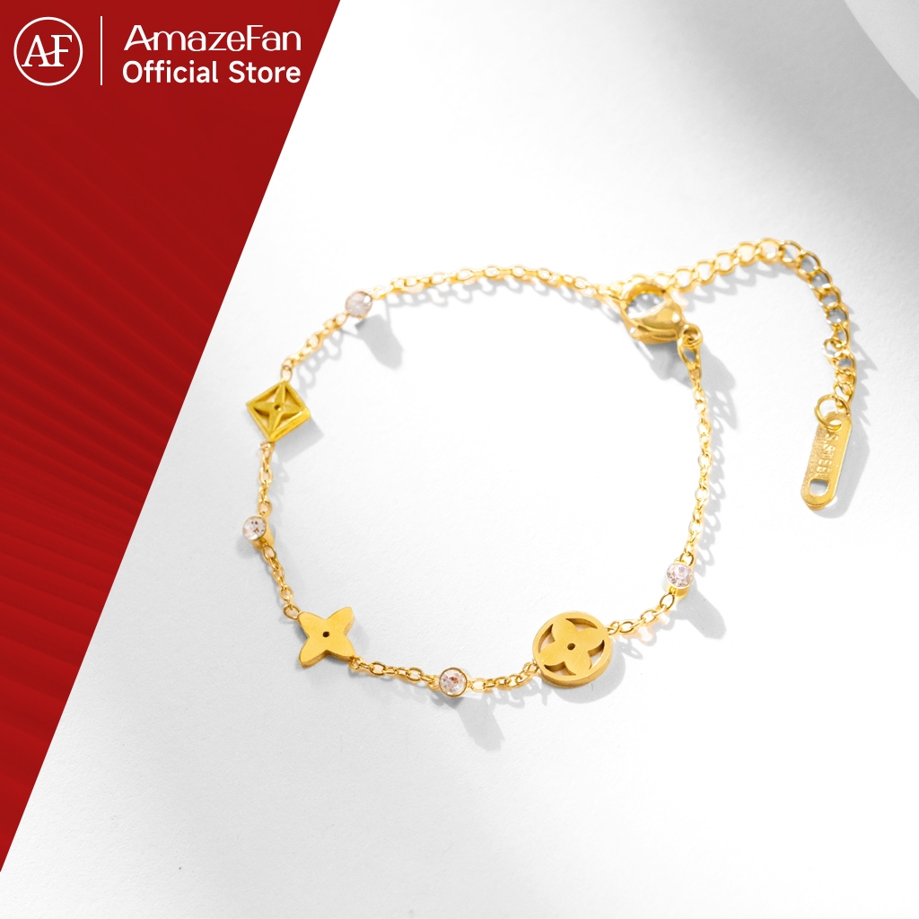 Amazefan Gelang Wanita Titanium 18K Anti Alergi | Berlian Bintang & Desain Korea Minimalis Elegan - Tahan Air/Keringat/Pudar, Cocok untuk Daily Wear & Hadiah Anniversary (Garansi 1 Tahun + Kotak Premium)
