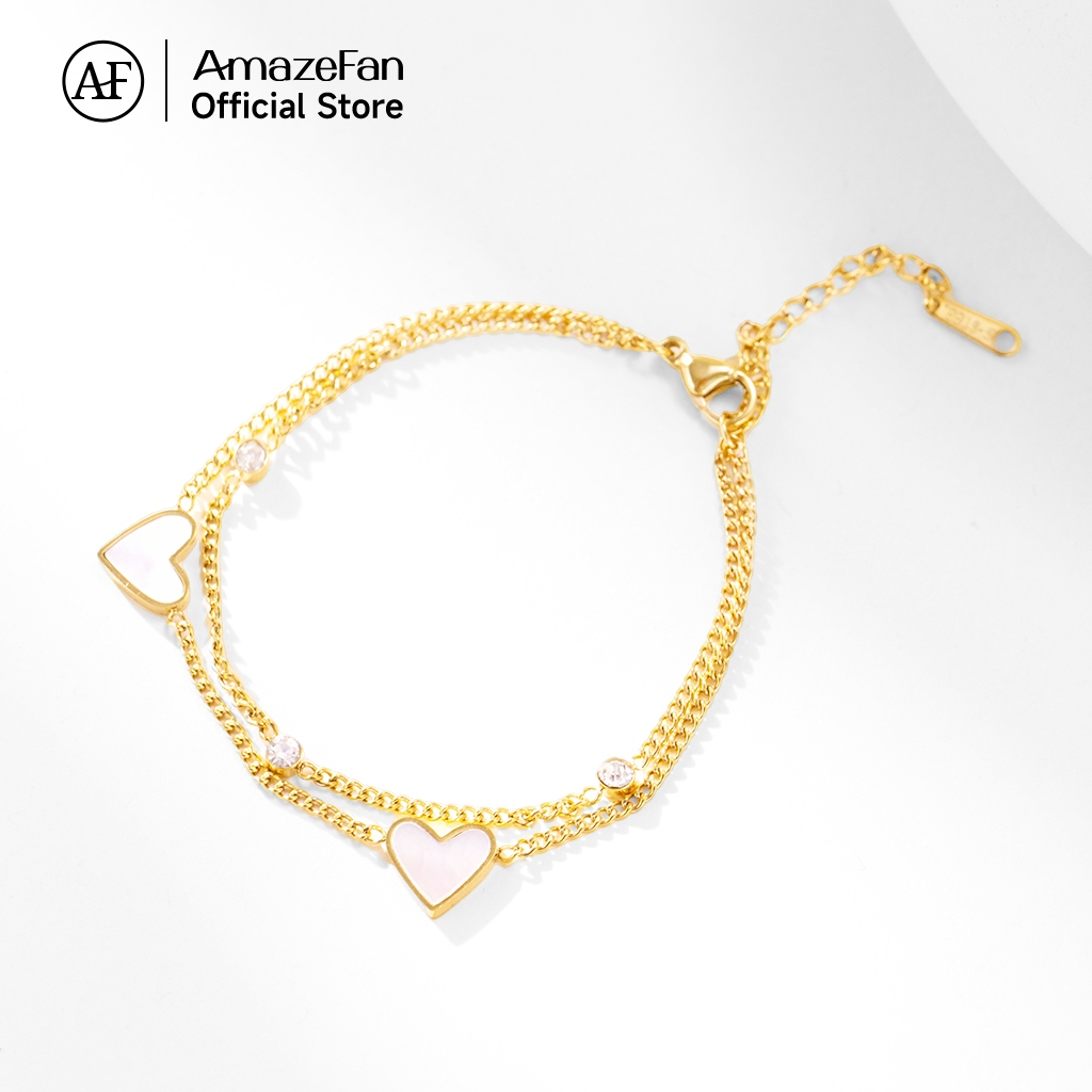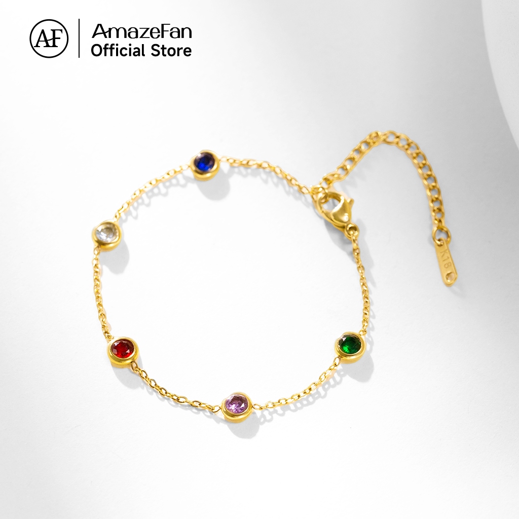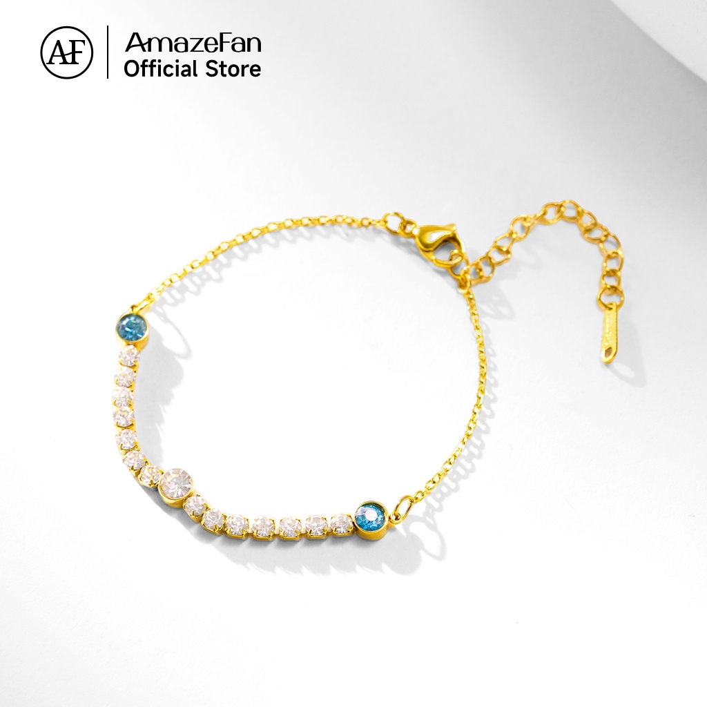 Amazefan Gelang Wanita Titanium 18K Anti Alergi | Berlian Bintang & Desain Korea Minimalis Elegan - Tahan Air/Keringat/Pudar, Cocok untuk Daily Wear & Hadiah Anniversary (Garansi 1 Tahun + Kotak Premium)