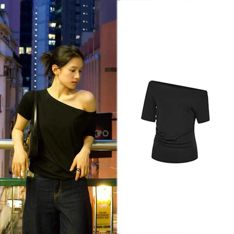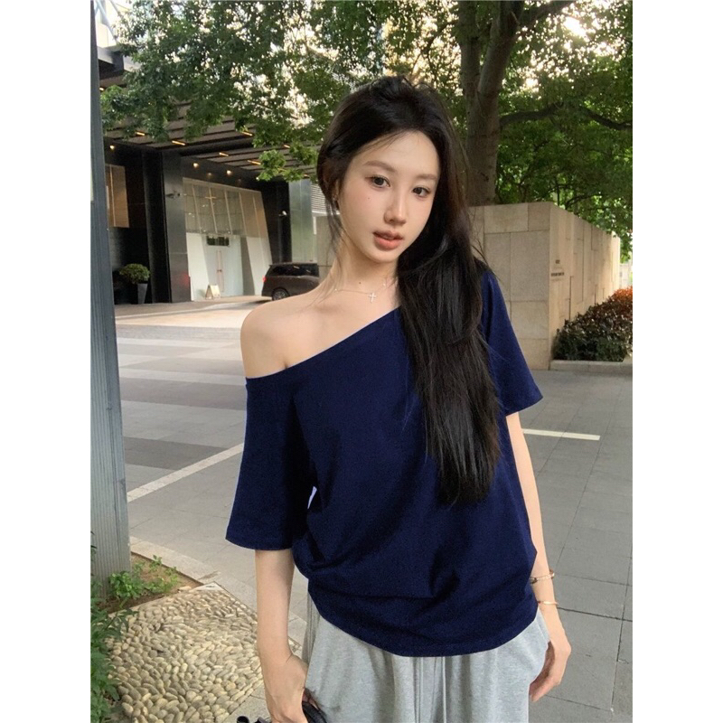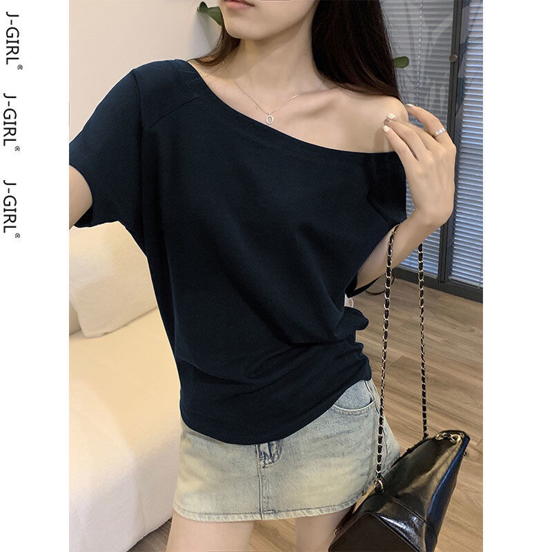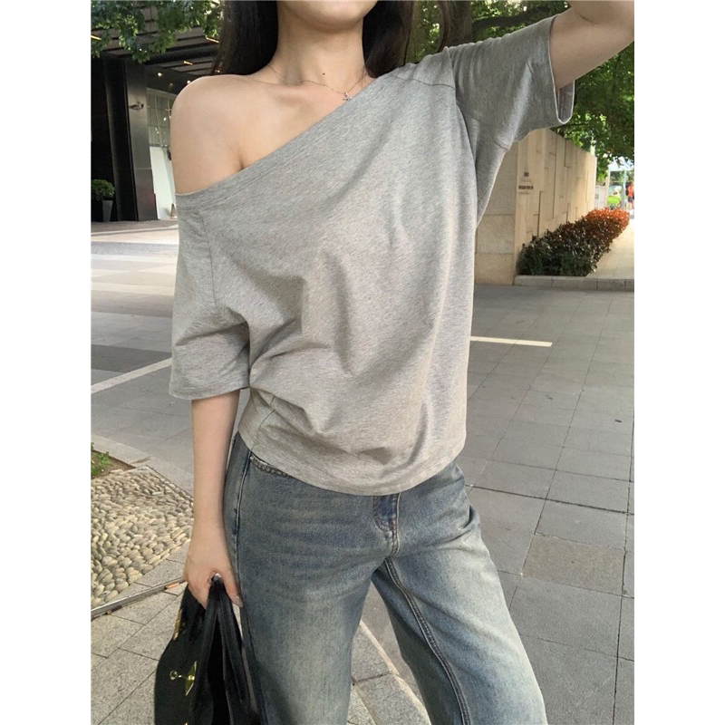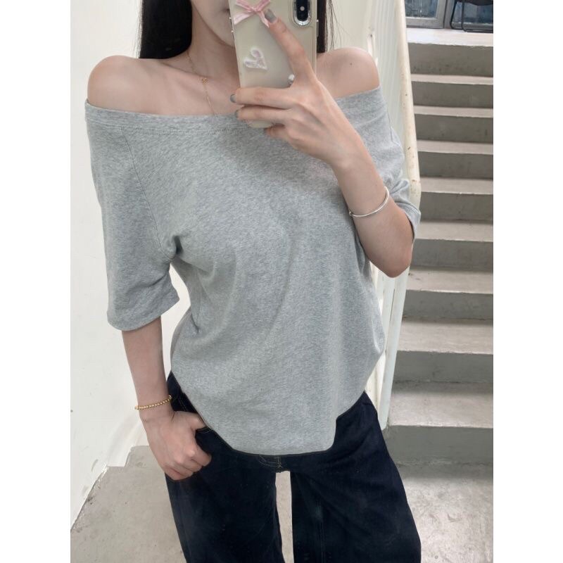 BJ1872 (READY) Kaos sabrina atasan wanita (hitam, putih, abu2, navy)
