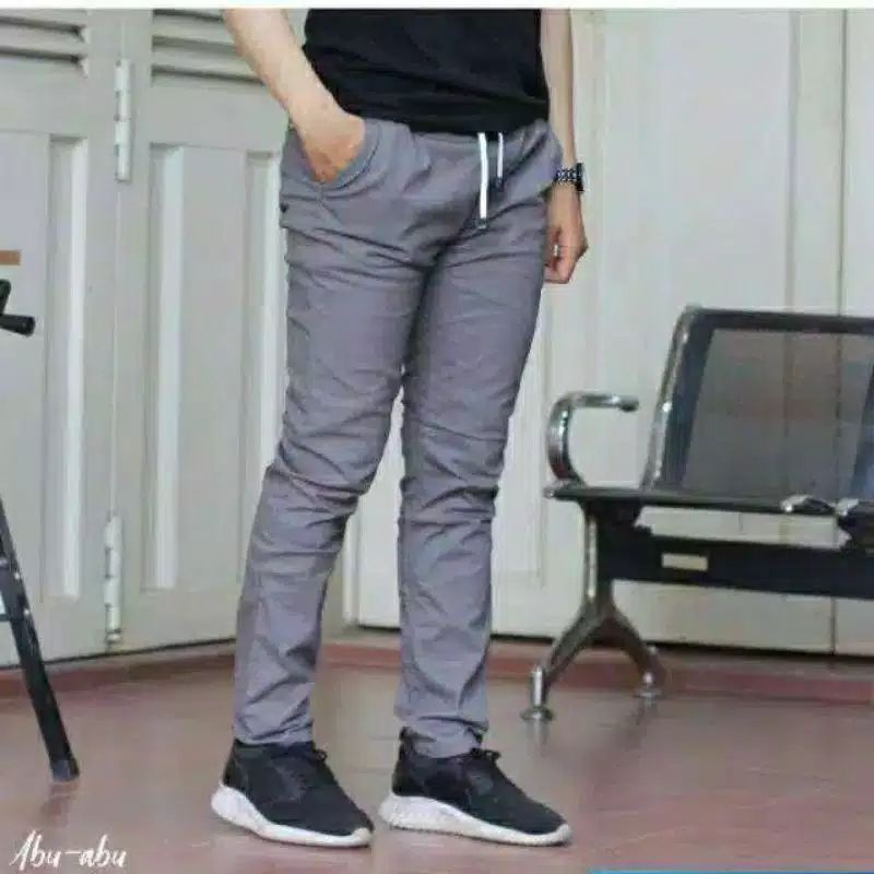 firzanfashion [27-44] CELANA CHINOS COWOK PANJANG JUMBO KARET PINGGANG RIP KOLOR