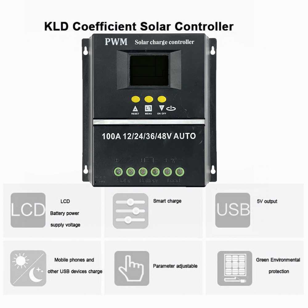 COD Solar Charge cas Controller tenaga surya Auto Controller Battery Dual USB 100A 12/24/36/48V MPPT