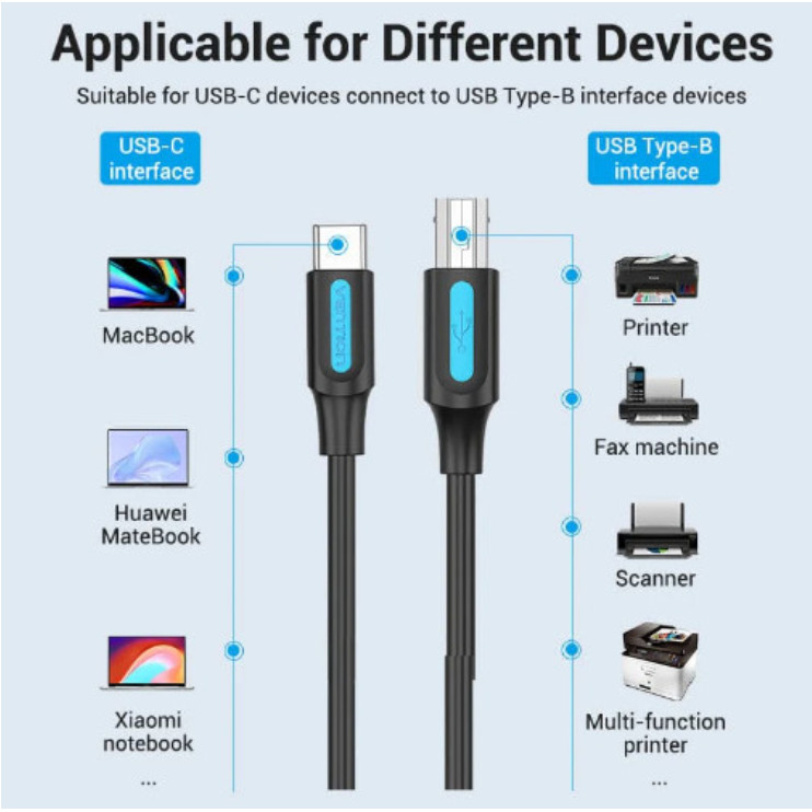 Vention Kabel Data USB Type C to B 2.0 Printer Cable Scanner Mixer Kamera Pendek 50cm 1m