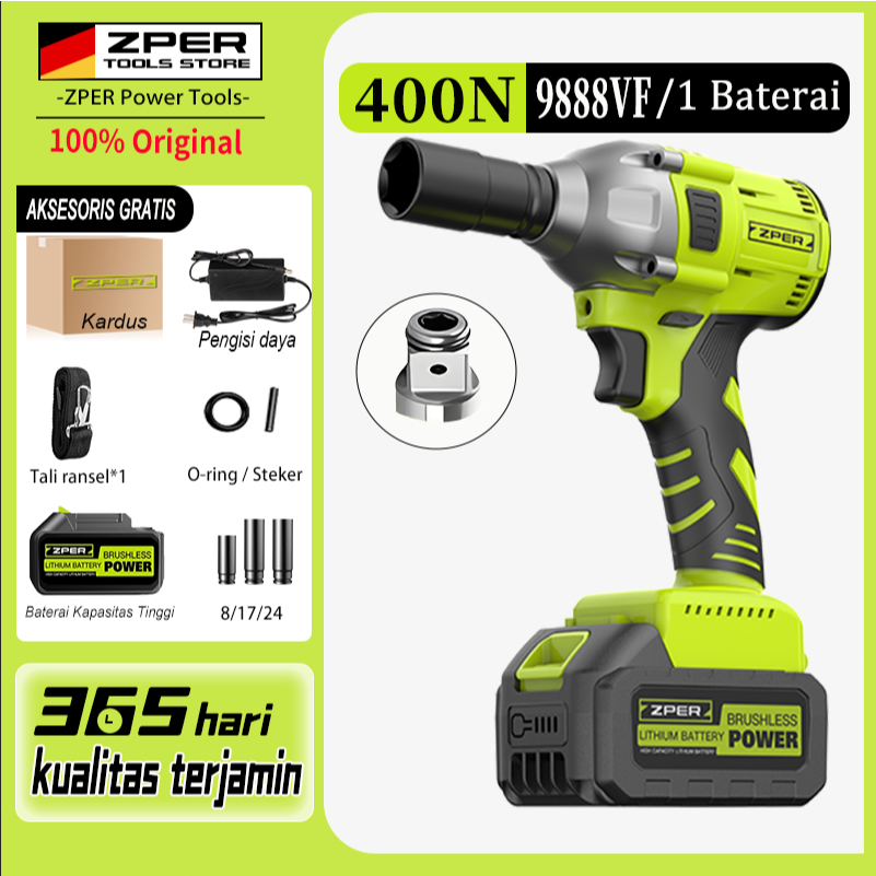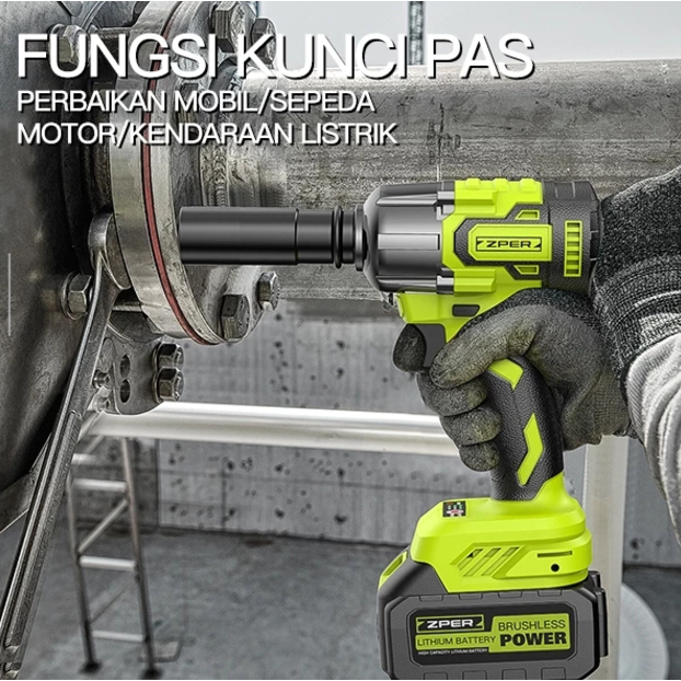 [ 100% ORI ] ZPER Impact Wrench Brushless Cordless Bor Impact Baterai Listrik Electric Rechargeable Torsi Besar