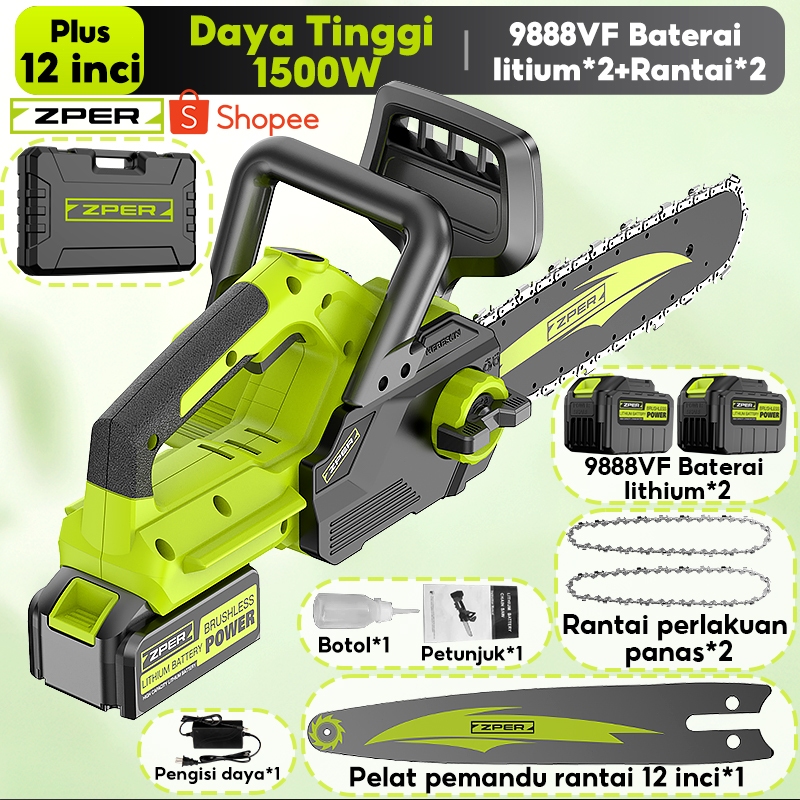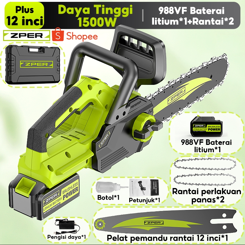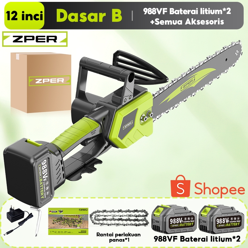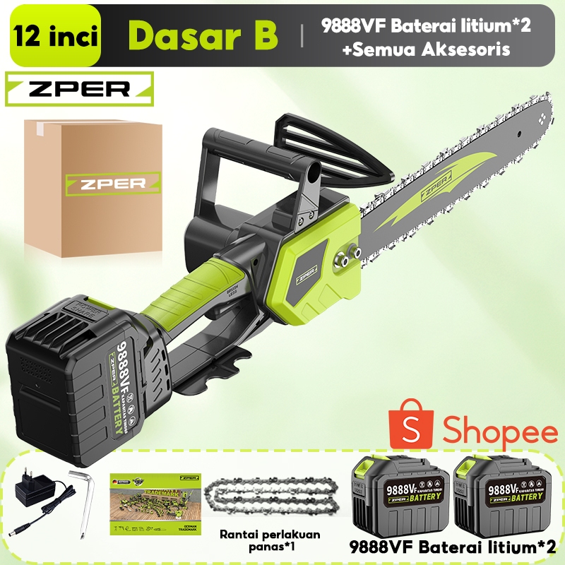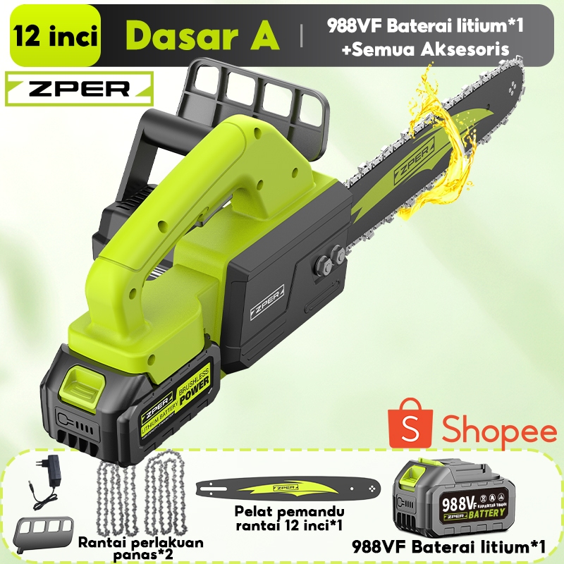 ZPER Mesin Gergaji Kayu 12 Inci Gergaji Kecepatan Tinggi Chainsaw Listrik Gergaji Potong Kayu Rantai Elektrik Lithium High Speed Saw