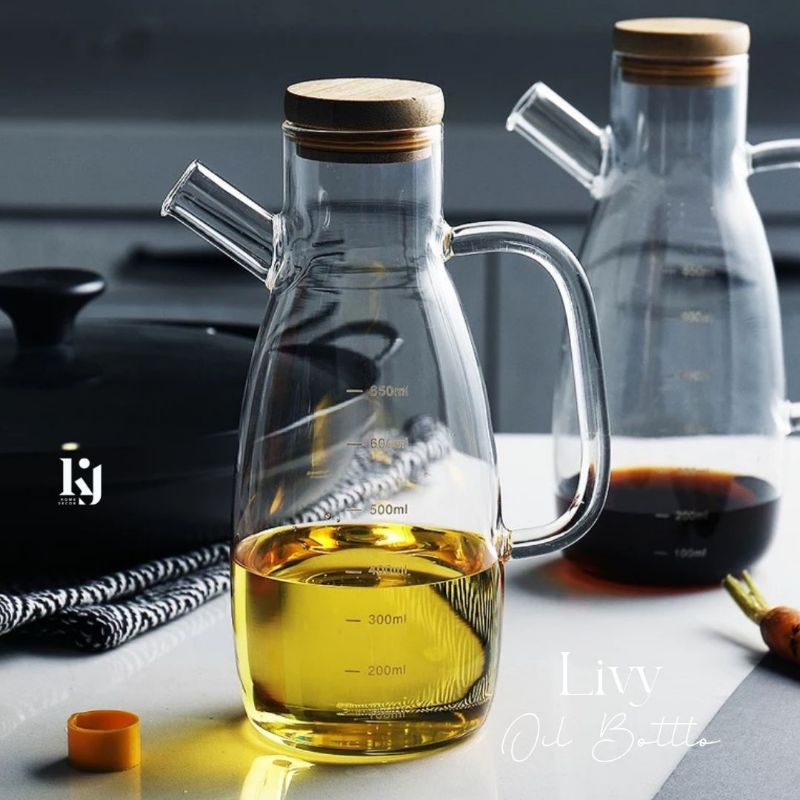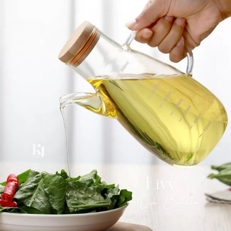 LIVY Oil Bottle Botol Minyak Kaca Handle Tutup Kayu