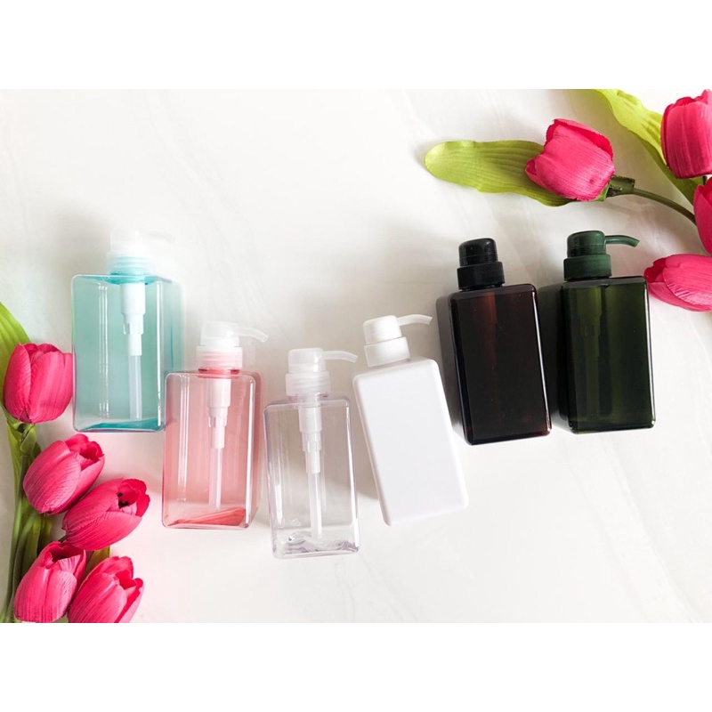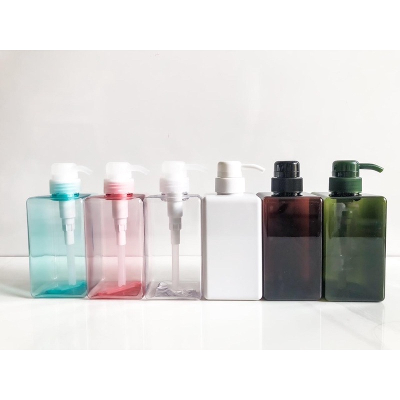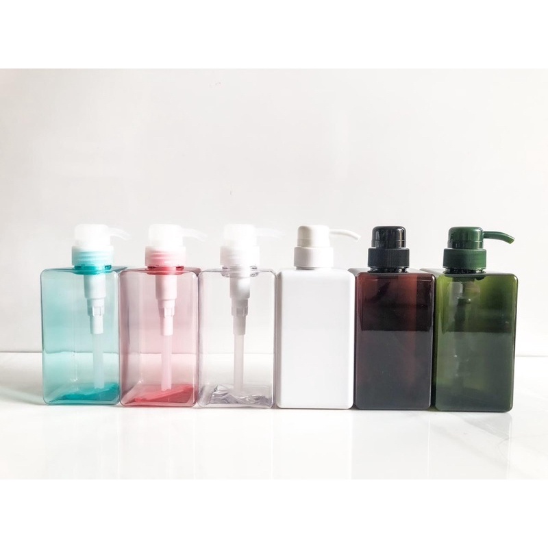 NEW 450ml botol PUMP KOTAK plastik warna - pet 1 -botol sabun - lotion - botol pump plastik