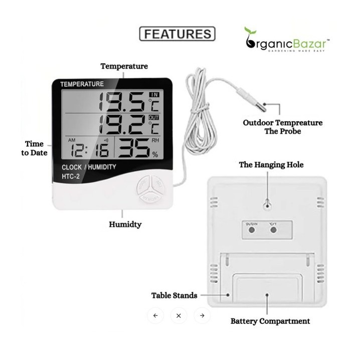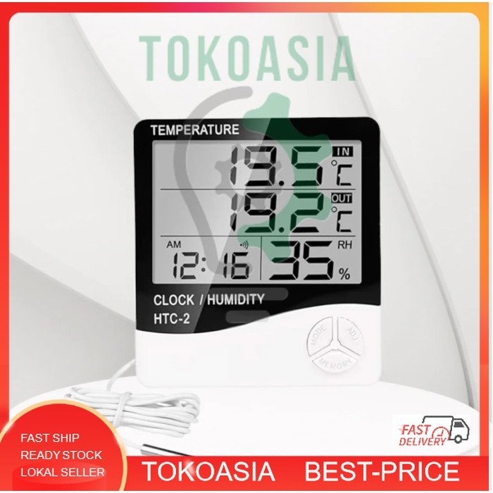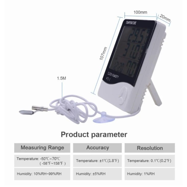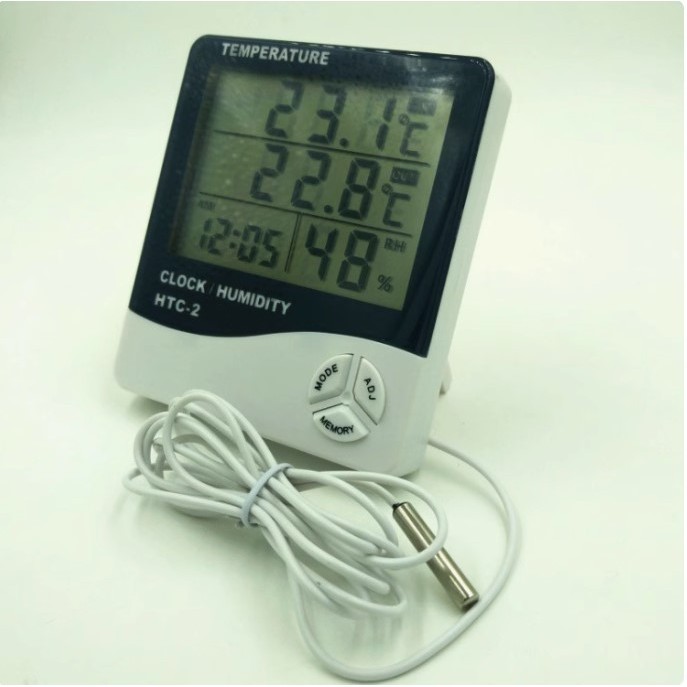 HTC-2 Digital 3 in 1 Hygrometer Thermometer Humidity Meter With Clock LCD Display with probe