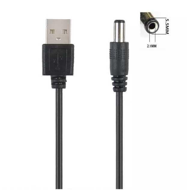12V DC OUTPUT USB Male to 5.5mm x 2.1mm Connector power cable