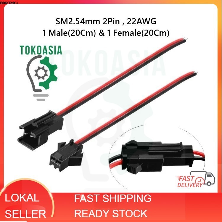 (1 set) SM2.54mm SM2P 20cm 2P 2 Jalur Wire Cable SM kabel Connector Plug Male Female