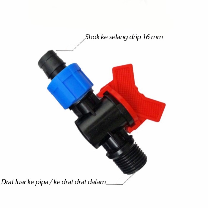 Connector Valve Drat 1/2 Inch - Selang Drip 16 mm