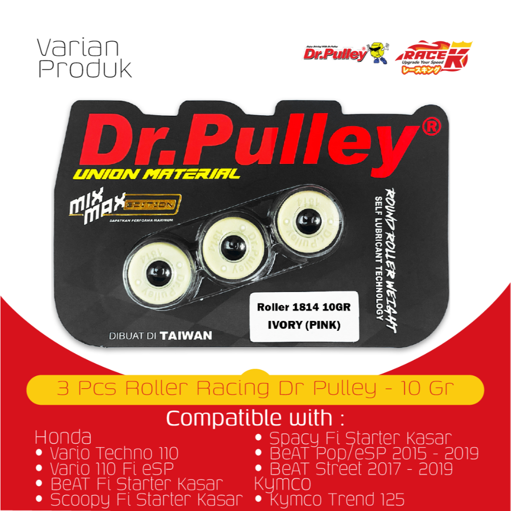 Dr Pulley Roller Racing BeAT Vario Scoopy Spacy Fi eSP Pop Street Techno 110 Kymco Trend 125 Tipe 1814 Per 3 Butir