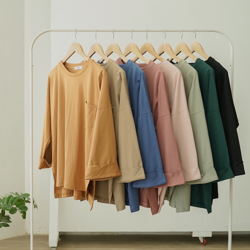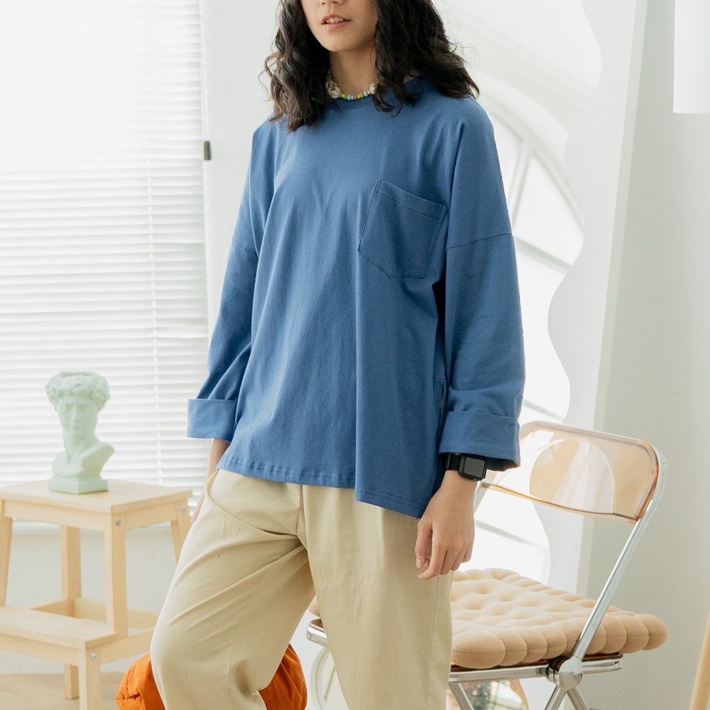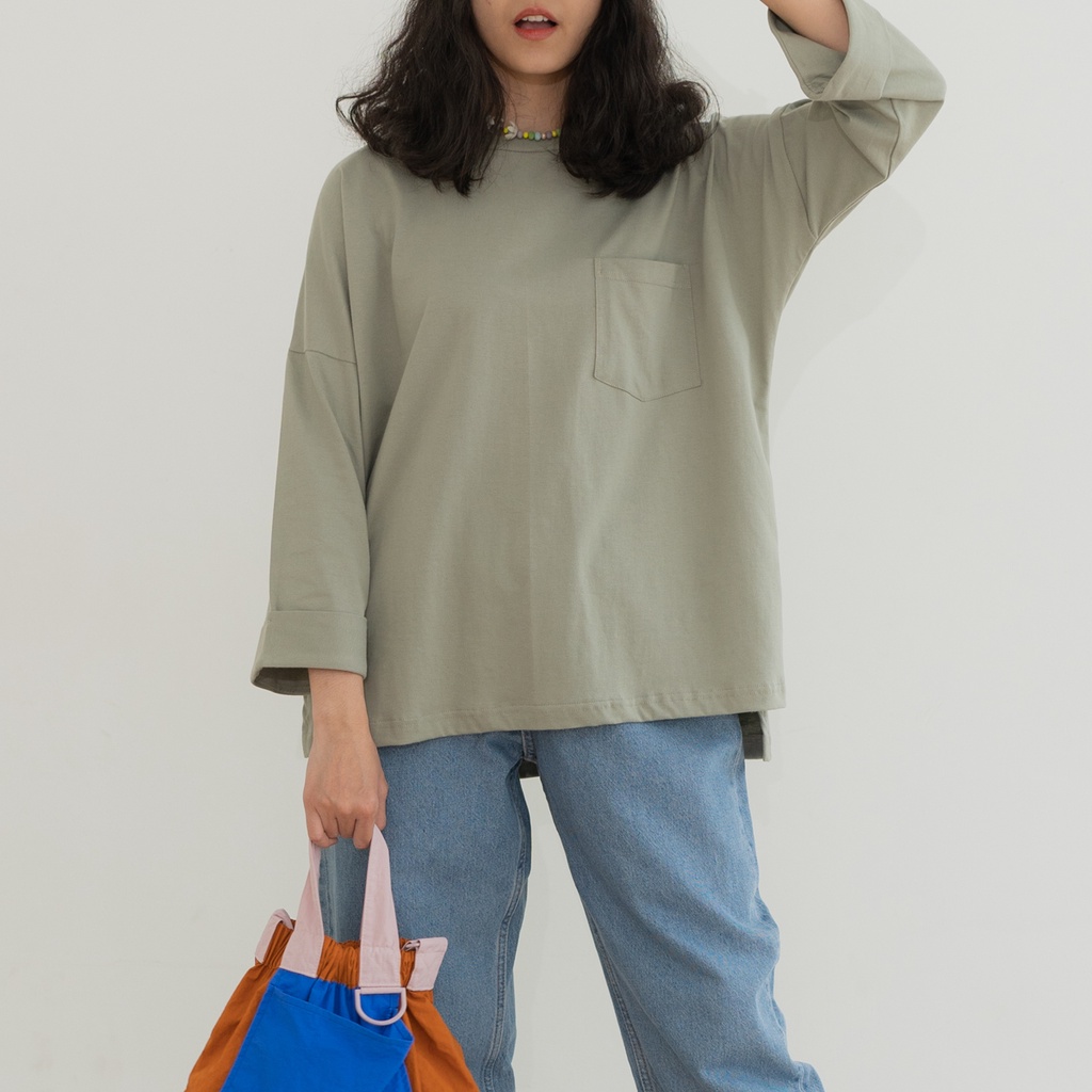 ANSSY - Rumi Oversize Pocket Tshirt - Kaos Lengan Panjang Saku Wanita