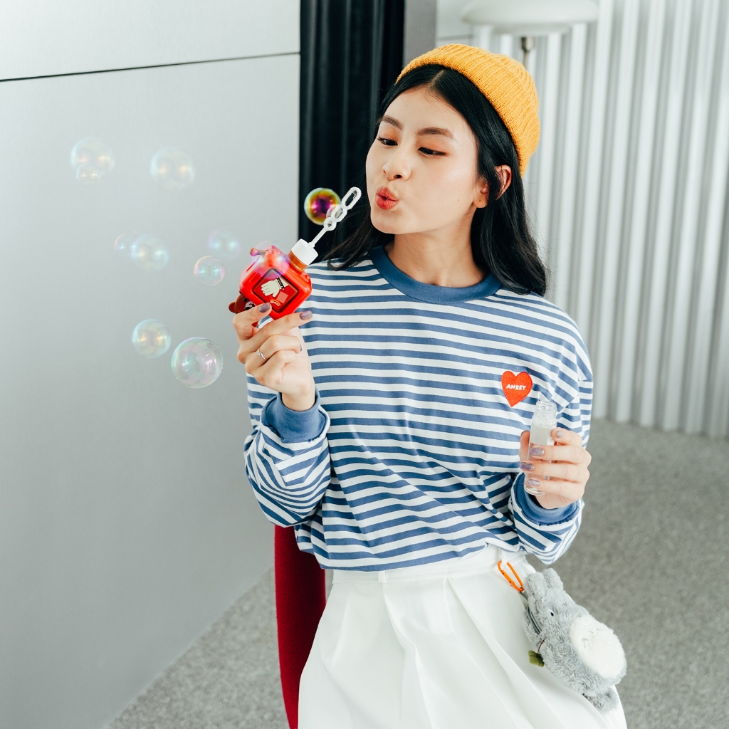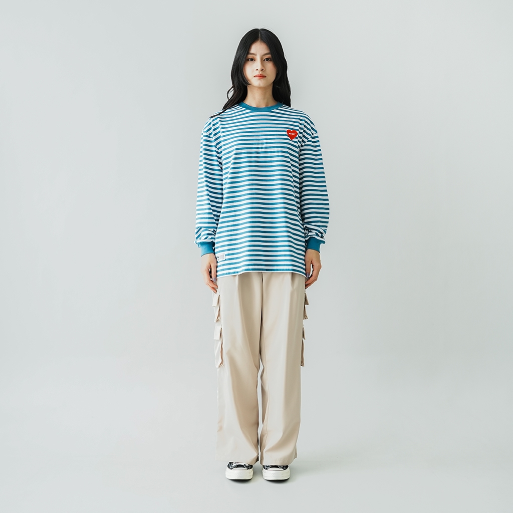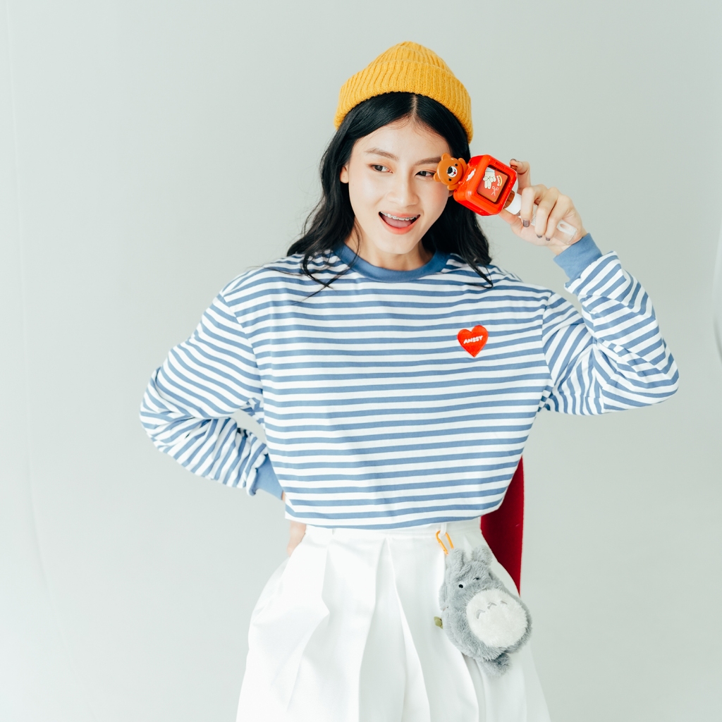 ANSSY - Rukka Long Sleeve Tshirt Stripe Dusty Blue - Kaos Lengan Panjang Wanita