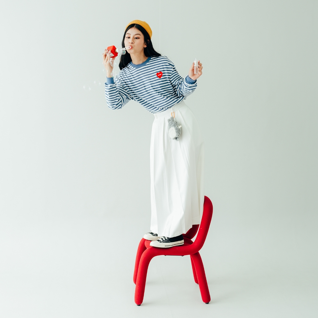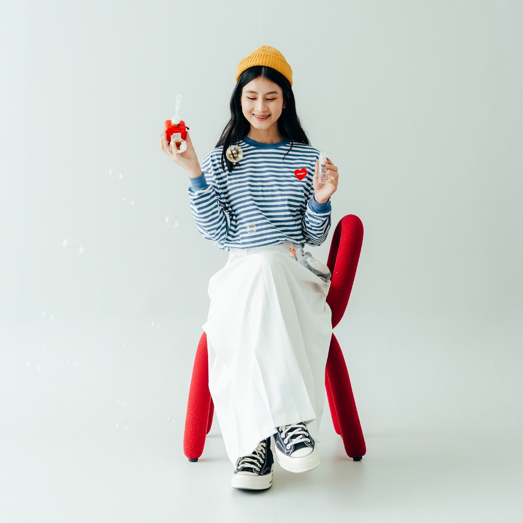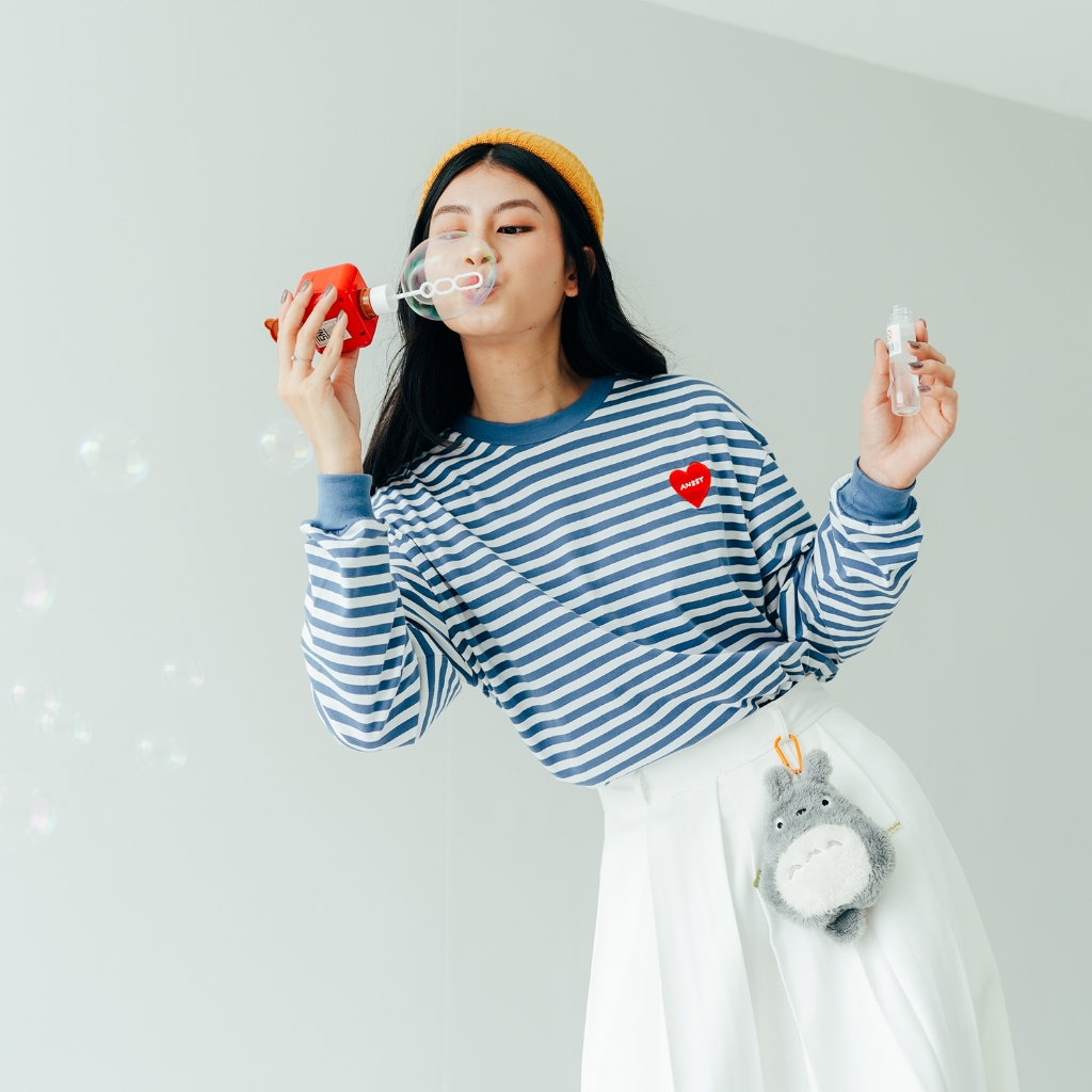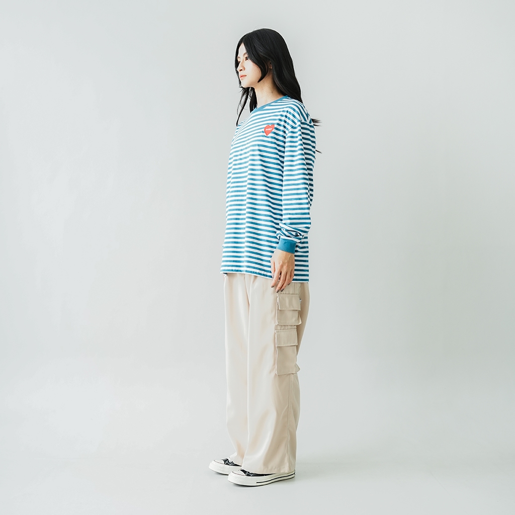 ANSSY - Rukka Long Sleeve Tshirt Stripe Dusty Blue - Kaos Lengan Panjang Wanita